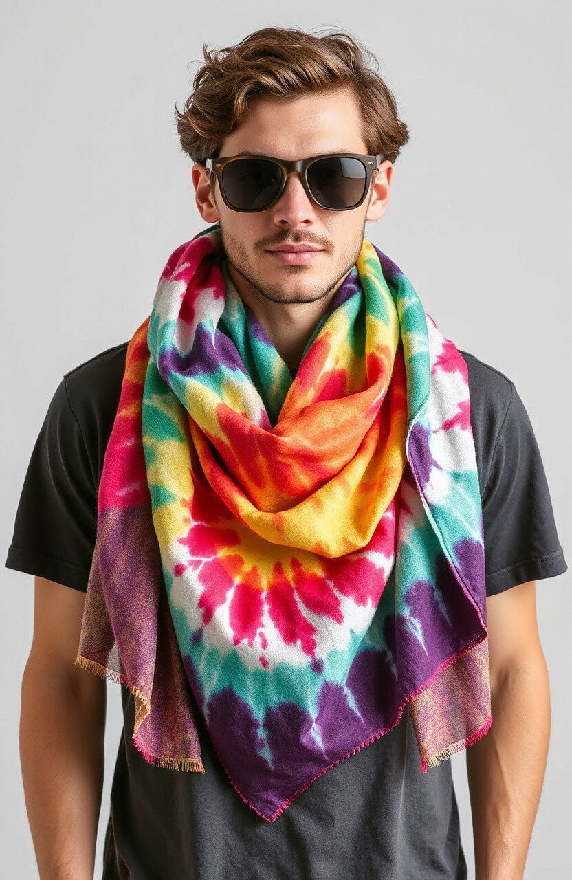 Embrace your inner free spirit with a tie-dye scarf. The vibrant colors and unique patterns are perfect for festivals or casual days out.