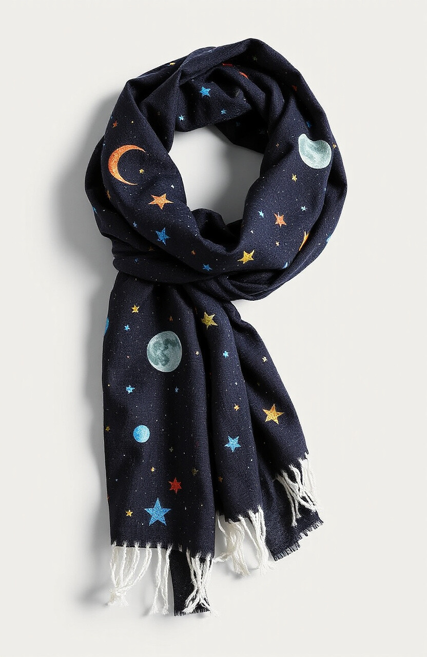 Reach for the stars with a celestial-themed scarf. Featuring stars, moons, or planets, it’s perfect for those who love stargazing.
