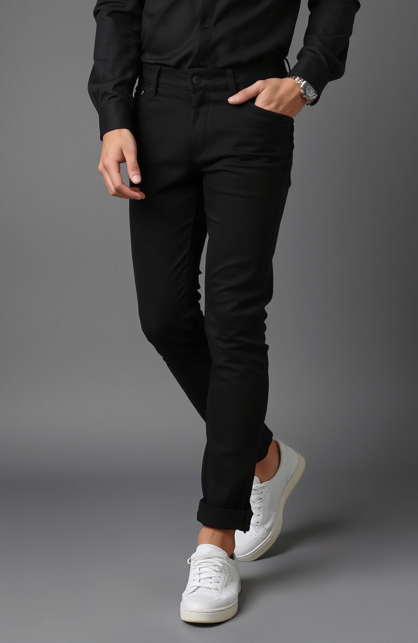 For a more polished look, black slim-fit jeans with cuffs are your go-to. They offer a sleek silhouette that’s great for both casual and semi-formal occasions.