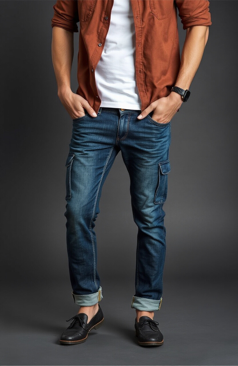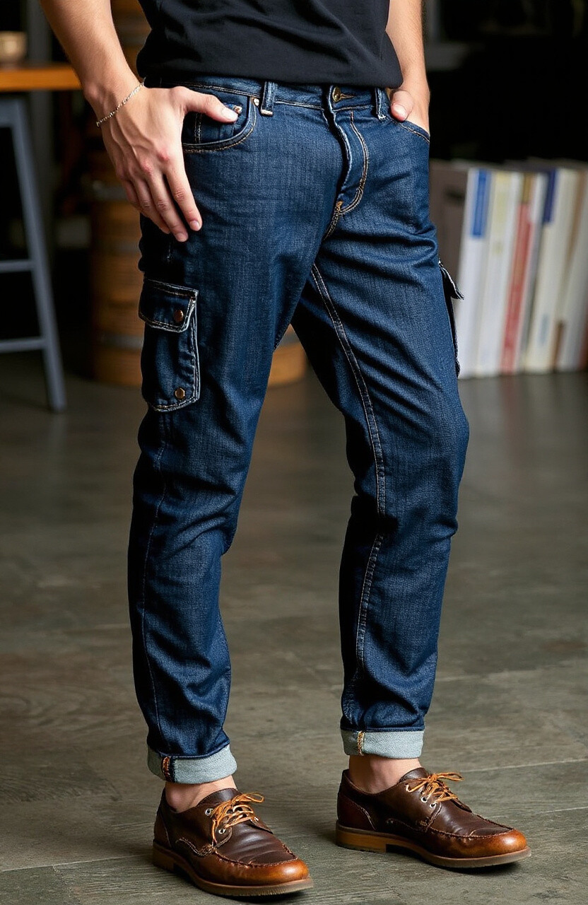 Utility jeans with cuffs combine function and fashion. They’re perfect for those who need a bit more practicality in their wardrobe.