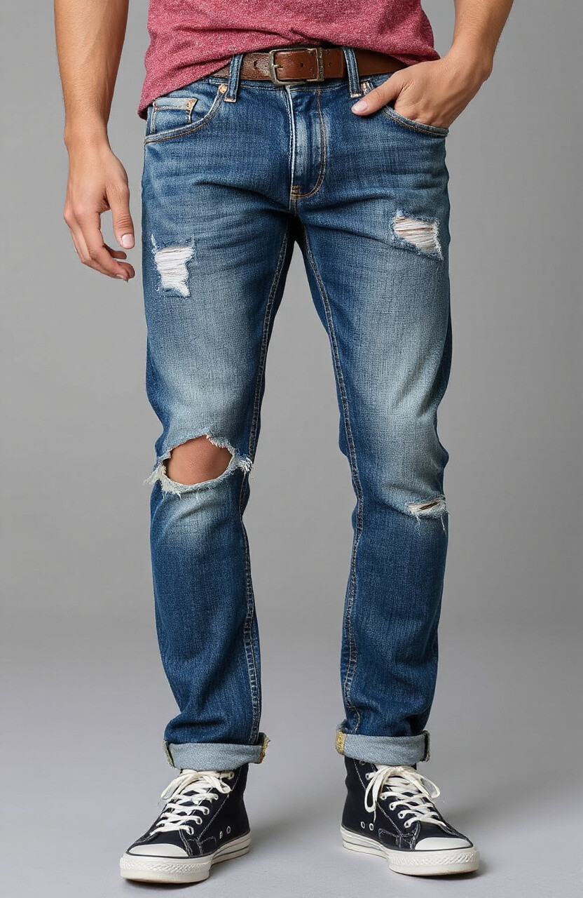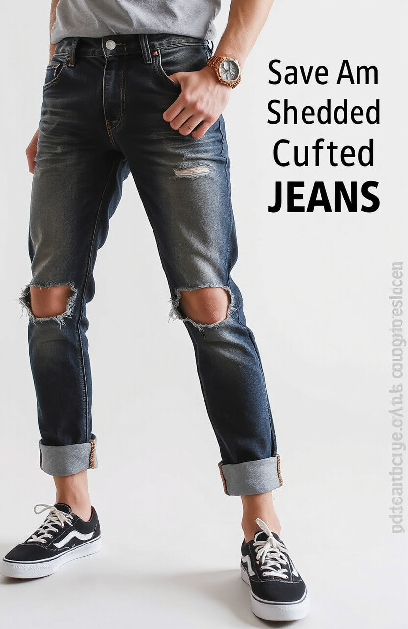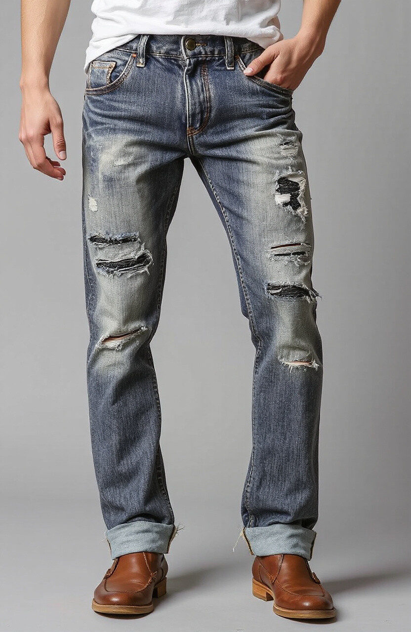 Shredded jeans with cuffs are all about attitude. They’re perfect for those who love a bit of edge in their style.