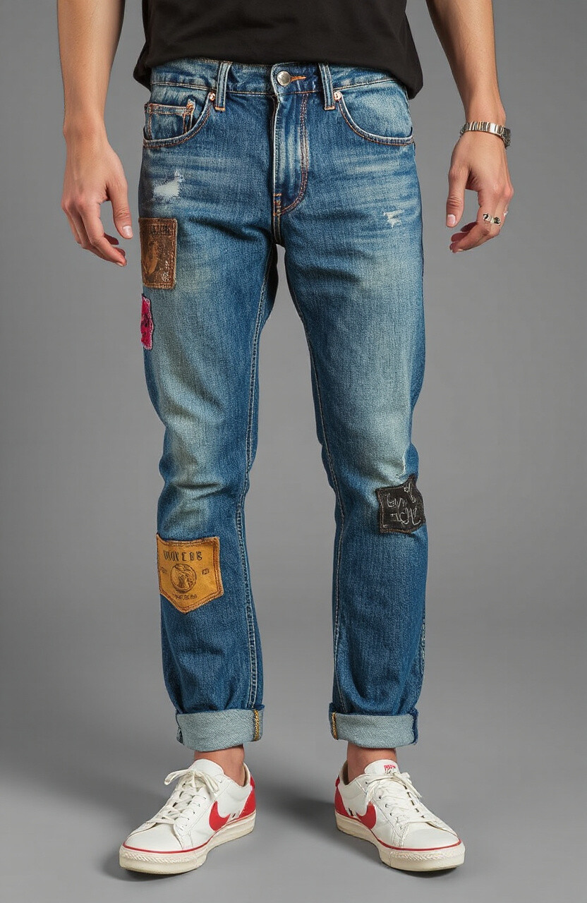 Painted jeans with cuffs are a canvas for creativity. They’re perfect for those who love to express themselves through fashion.