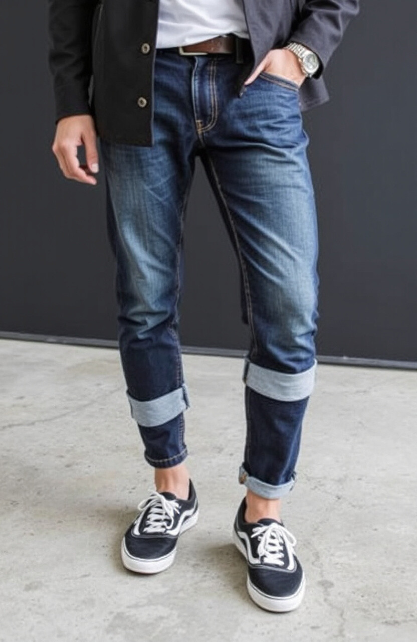 Double cuffs add a unique twist to traditional jeans. They’re stylish and perfect for those who love a bit of detail.