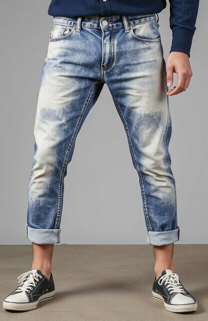 Stonewash jeans are about achieving that perfect faded look. These come with cuffs that add a modern flair to a classic style.