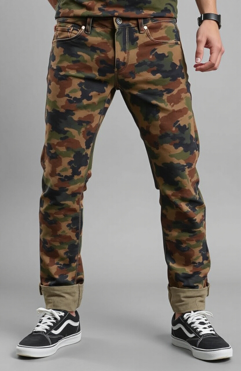 Camouflage jeans with cuffs offer a bold and adventurous look. They’re perfect for those who love to stand out.