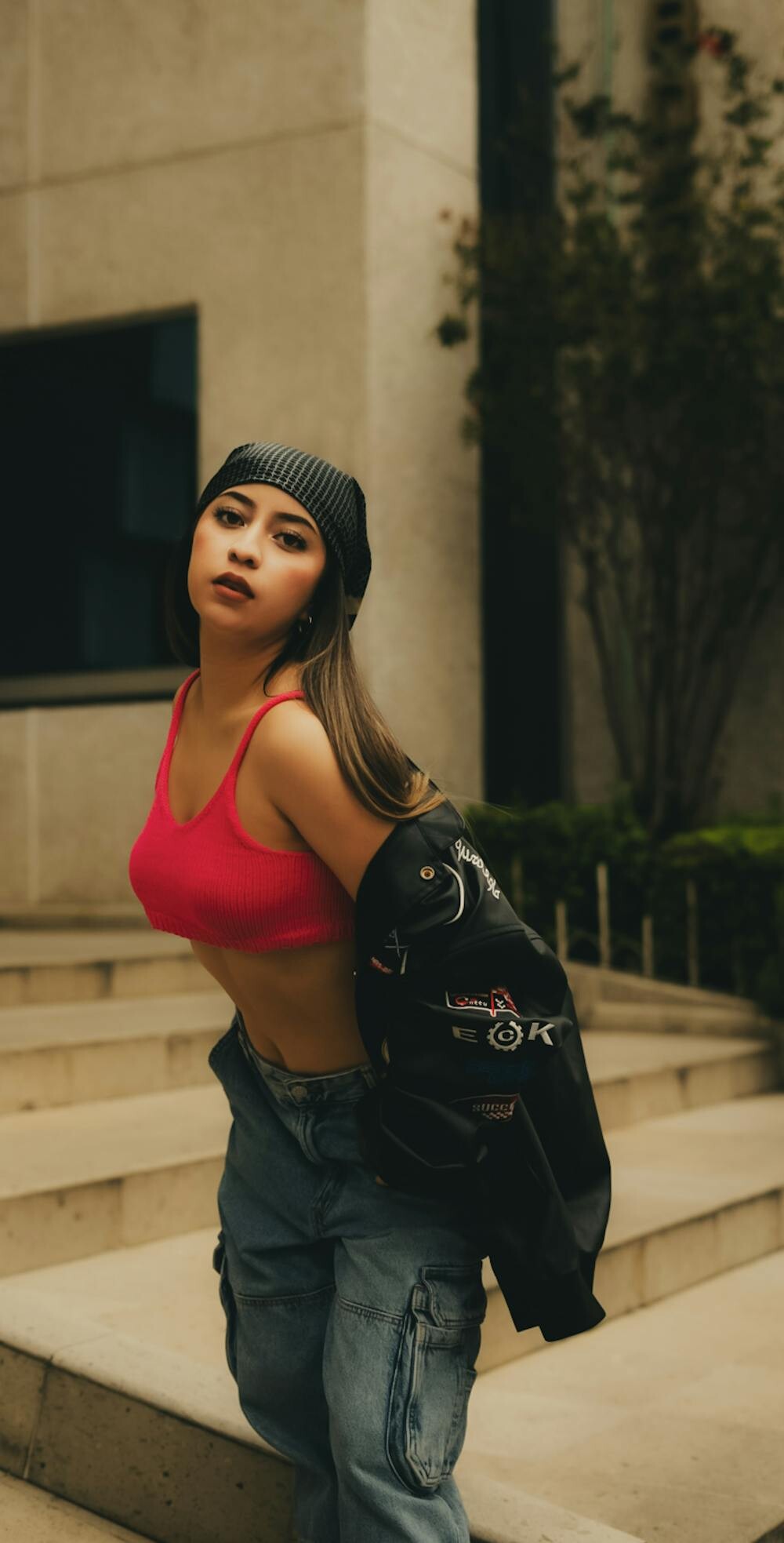 Keep it simple with a denim jacket, black leggings, and a plain top. Add some sleek accessories, like a minimalist watch or a small handbag. This look is all about clean lines and simplicity.