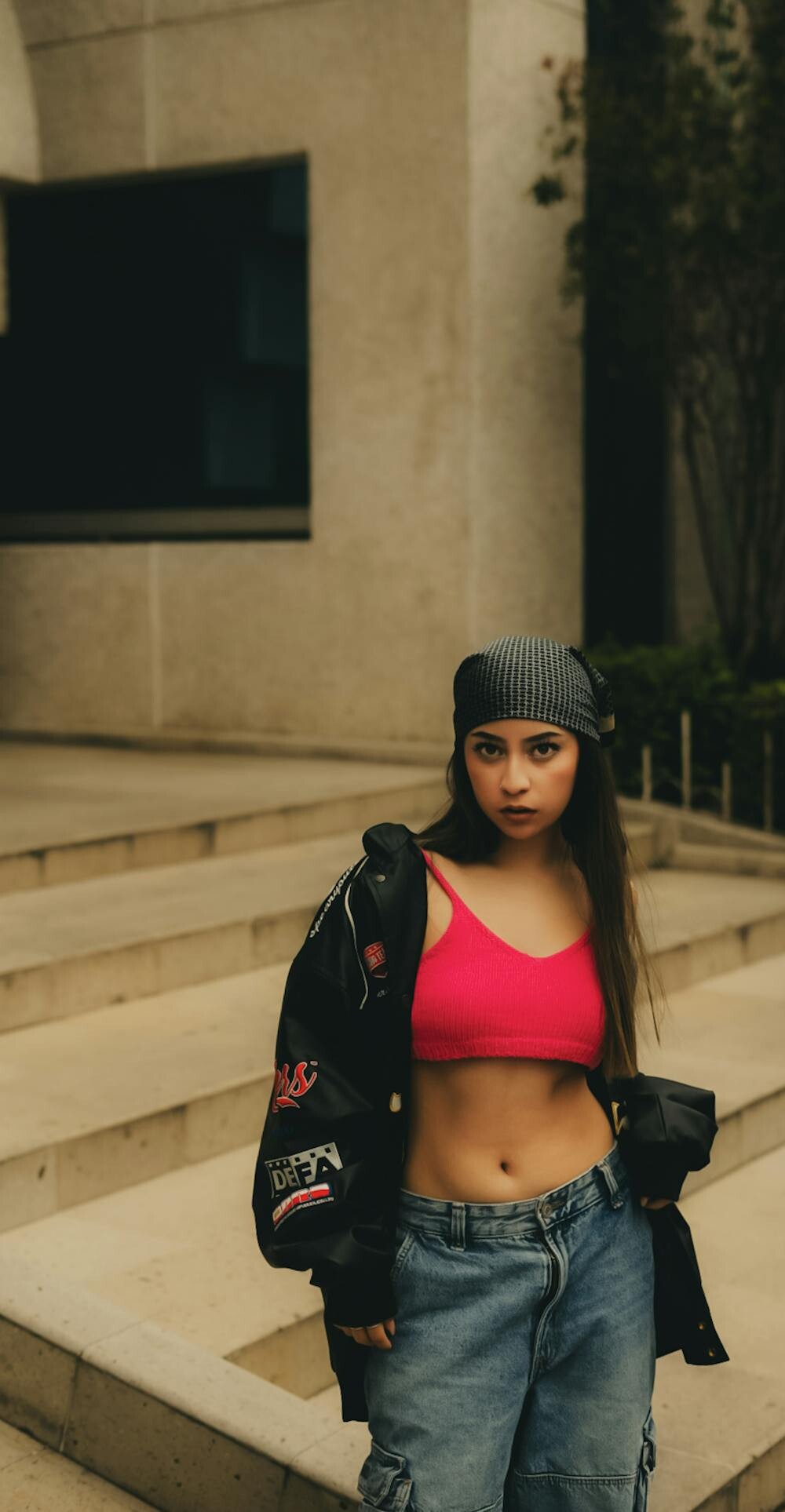 This outfit exudes confidence and attitude. The black denim is a twist on the classic blue and adds a touch of rebellion. Perfect for concerts or a night out with friends.