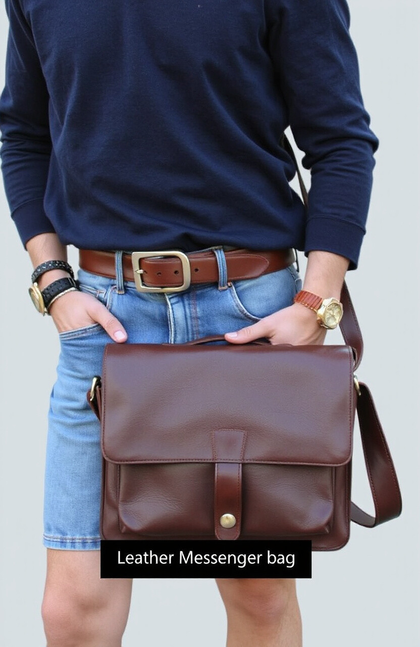 For a more refined look, choose a leather messenger bag. It’s sleek and pairs well with denim shorts for a smart-casual appearance.
