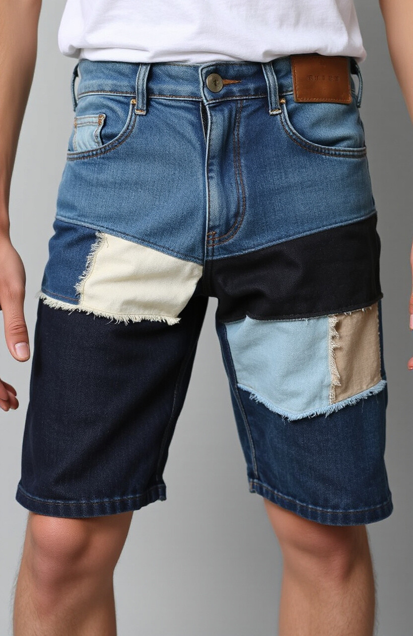 Patchwork denim shorts are playful and unique. They add color and texture to your outfit.