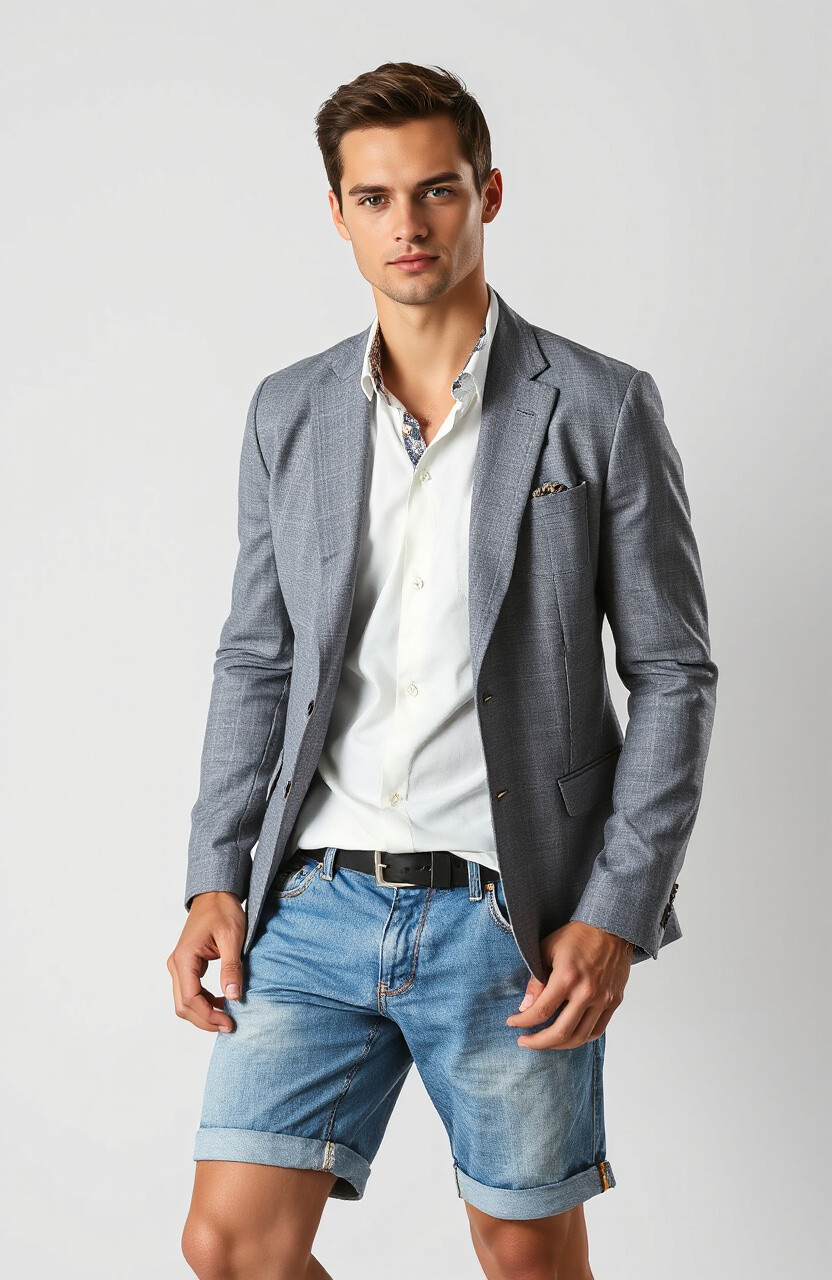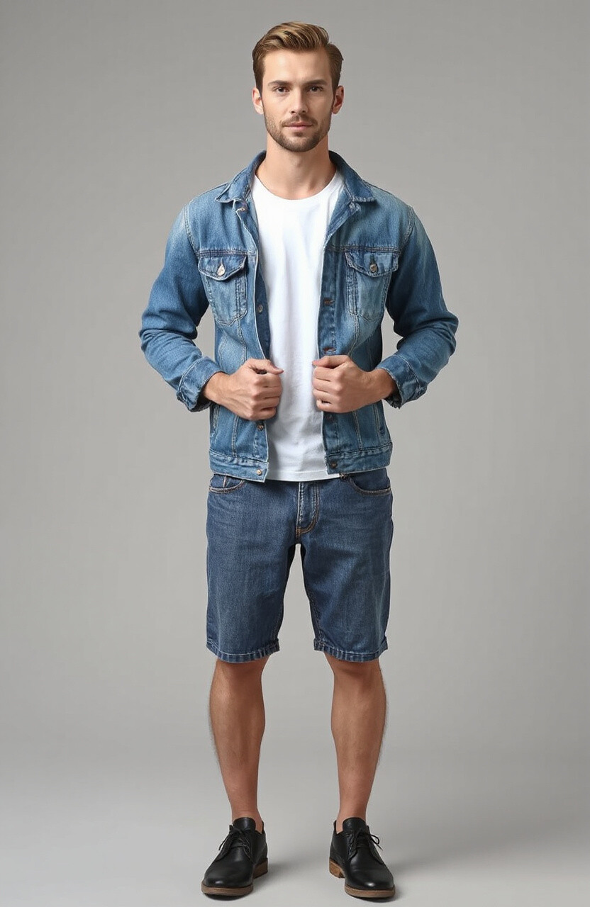 Denim on denim? Yes, please! A denim jacket adds a rugged edge to your shorts. Perfect for cooler evenings or a casual day out.