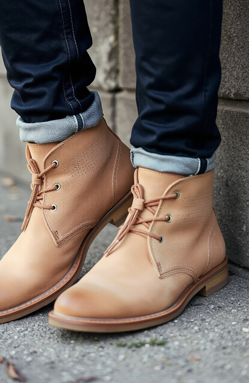 For a touch of sophistication, leather desert boots are your go-to. With their sleek finish, they offer a more refined look compared to their suede counterparts. They are perfect for business casual settings.