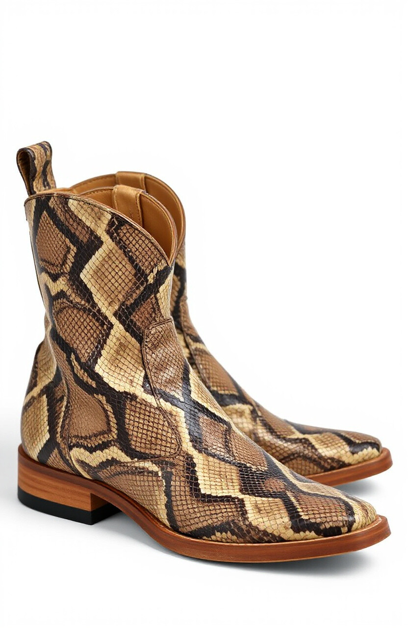 Snake print desert boots add a touch of exotic style to your footwear collection. Perfect for making a bold fashion statement, these boots are sure to turn heads.