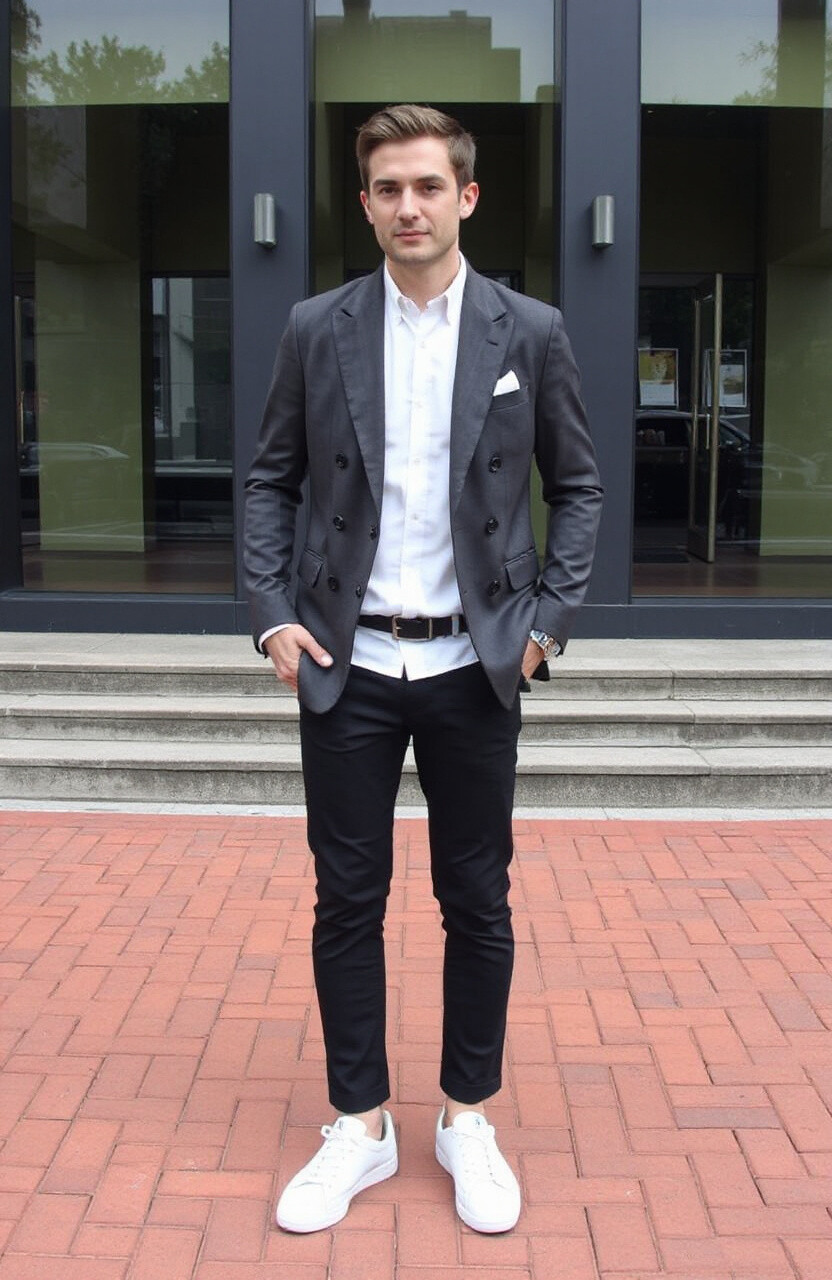 Mix a double-breasted blazer with a crisp white sneaker. It’s a modern take on a classic style, adding a touch of streetwear to your look.