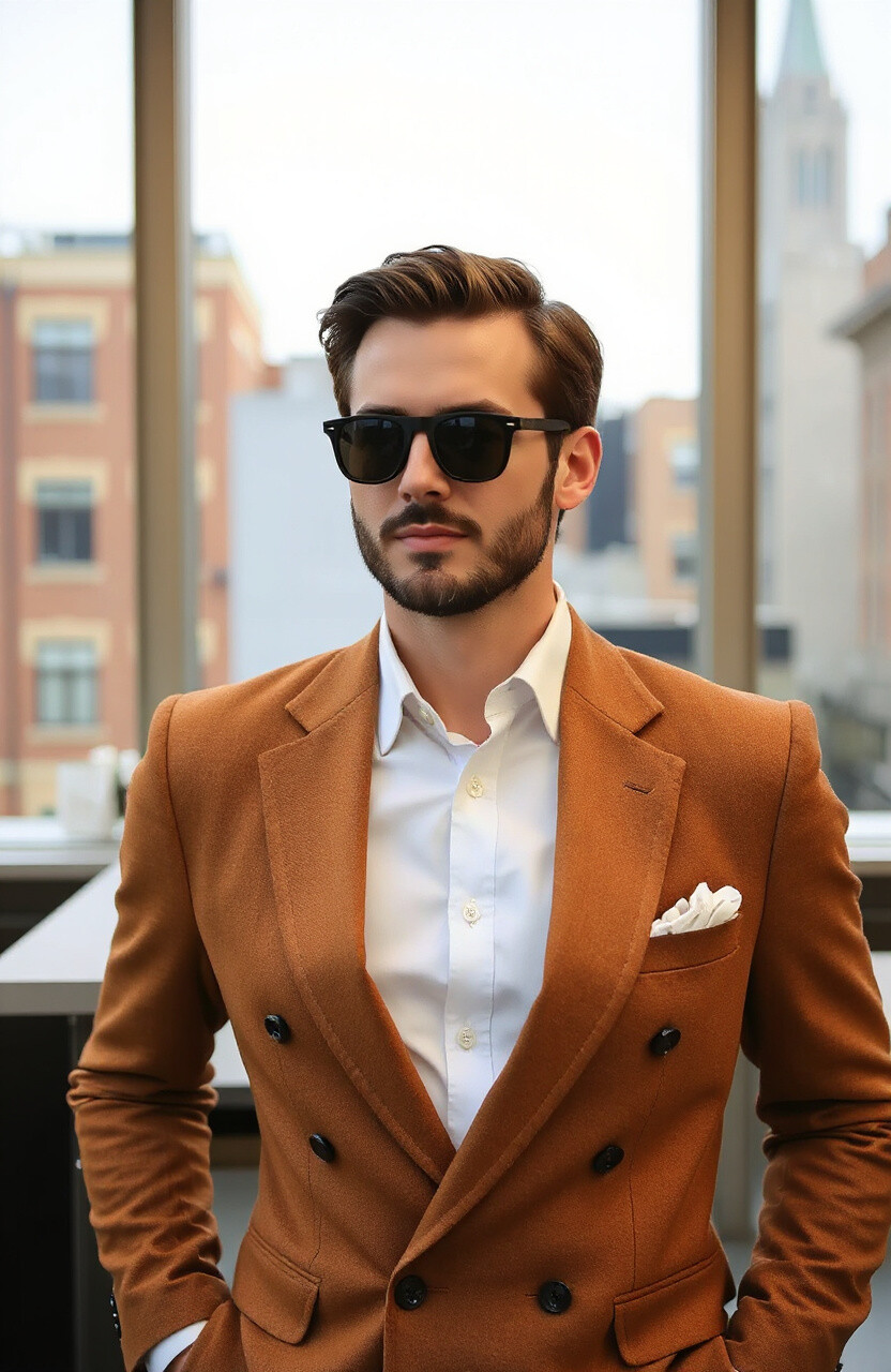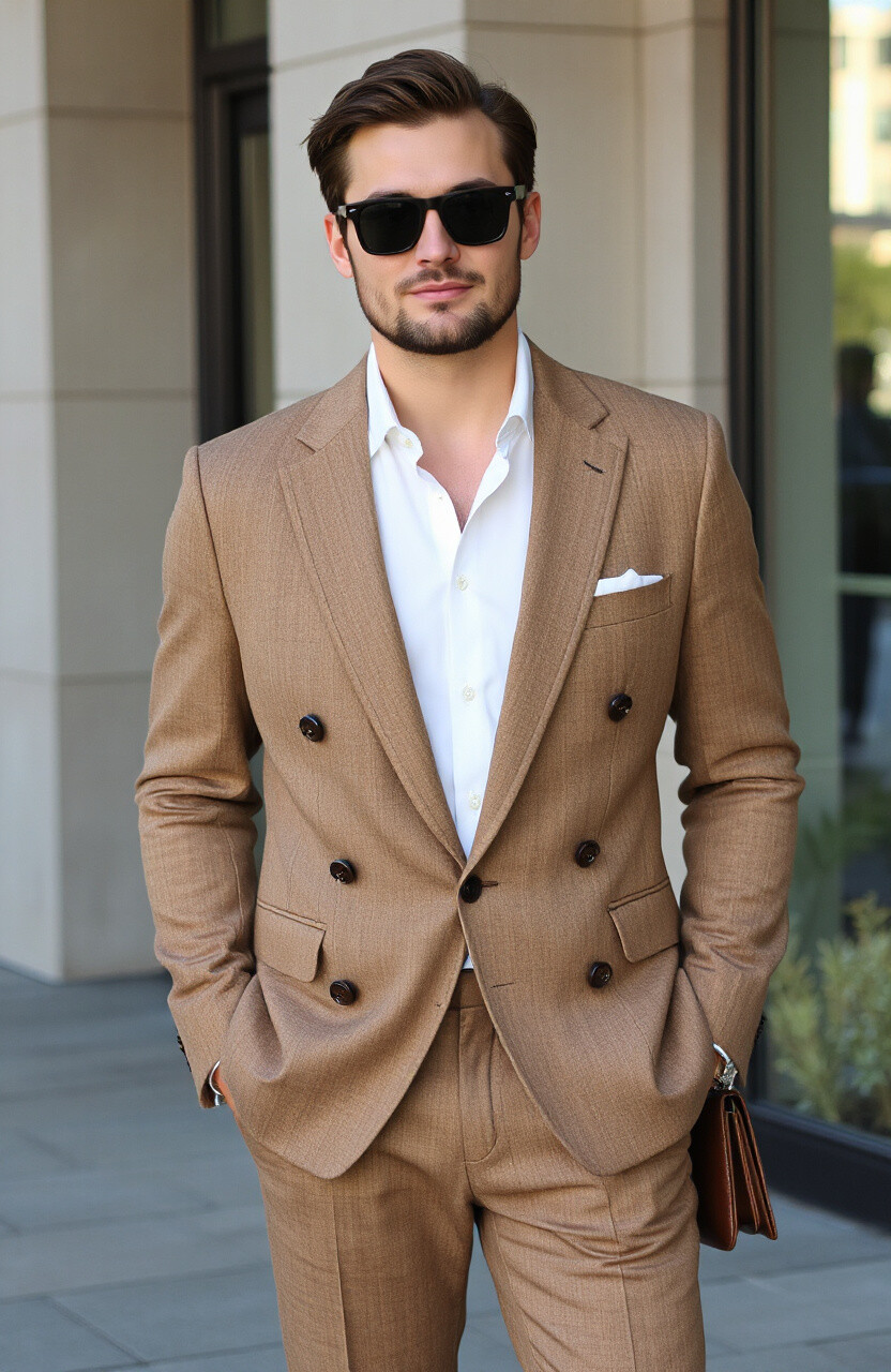 Aviator sunglasses add a cool, laid-back vibe to your double-breasted look. They’re a classic accessory that suits almost everyone.