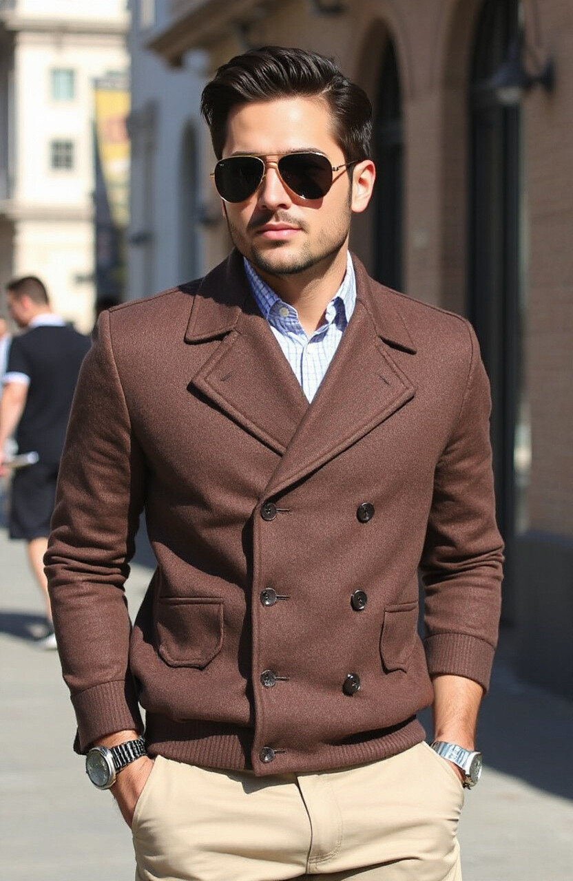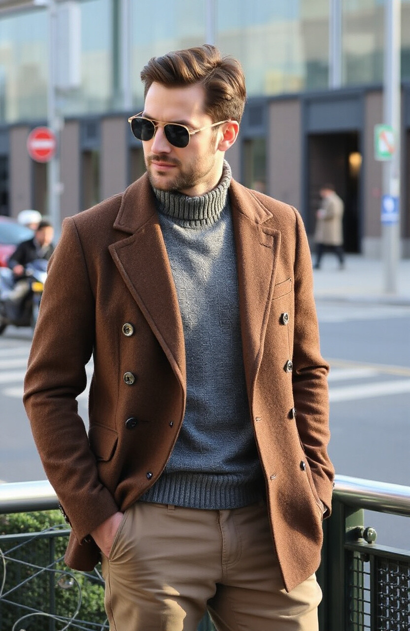 Military-inspired double-breasted jackets offer a structured, authoritative look. They’re sharp and timeless.