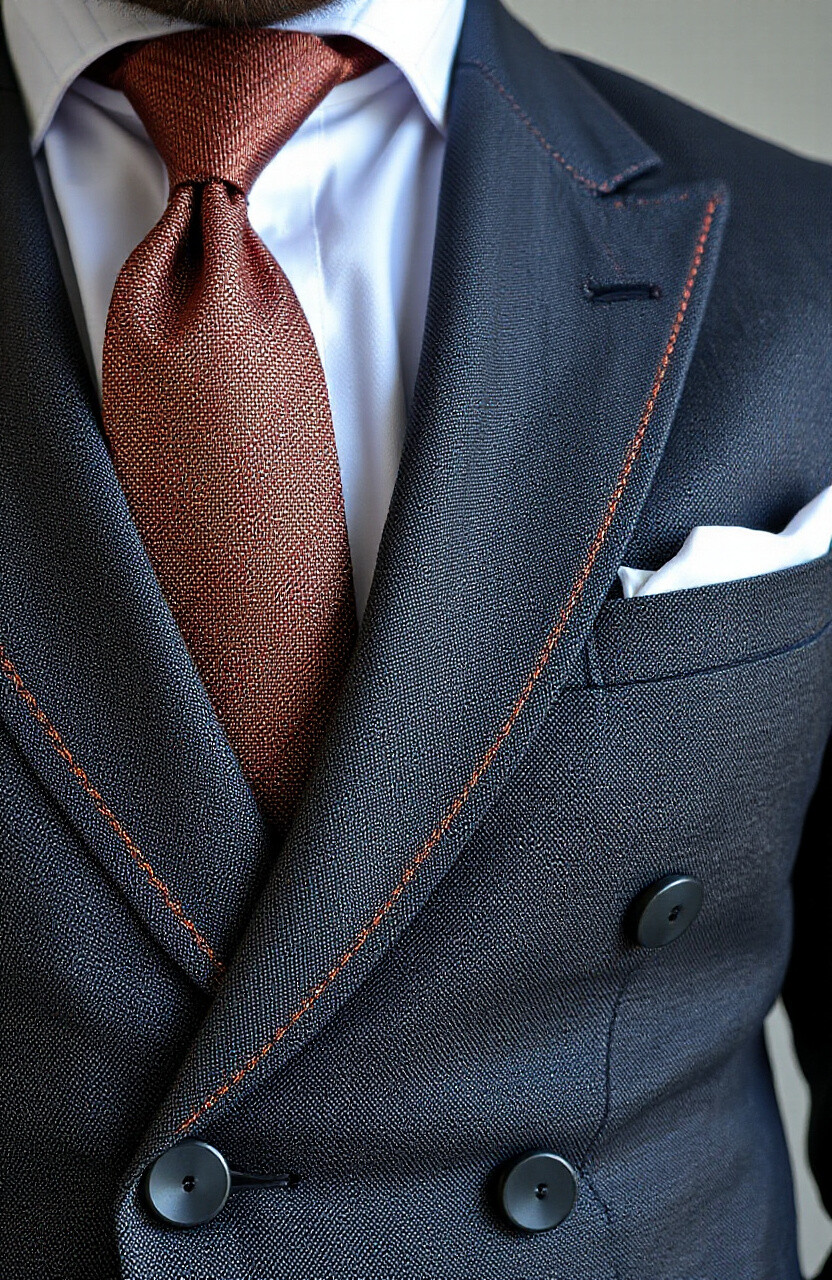Contrast stitching can add an interesting detail to your double-breasted suit. It’s a subtle way to add personality.