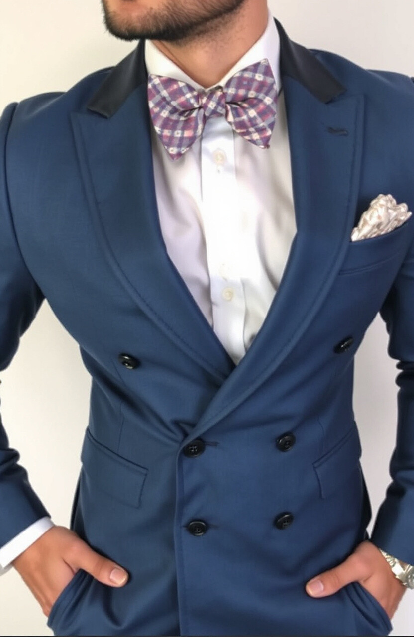 Bow ties add a playful, whimsical touch to your double-breasted look. They’re perfect for formal events or quirky styles.