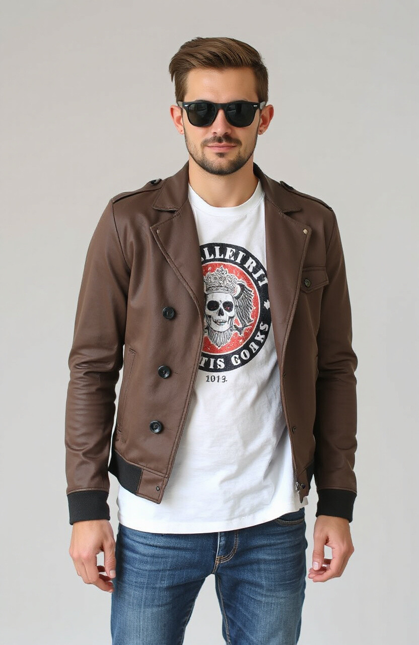 Pair your double-breasted jacket with a graphic tee for a casual, edgy vibe. It’s youthful and trendy.