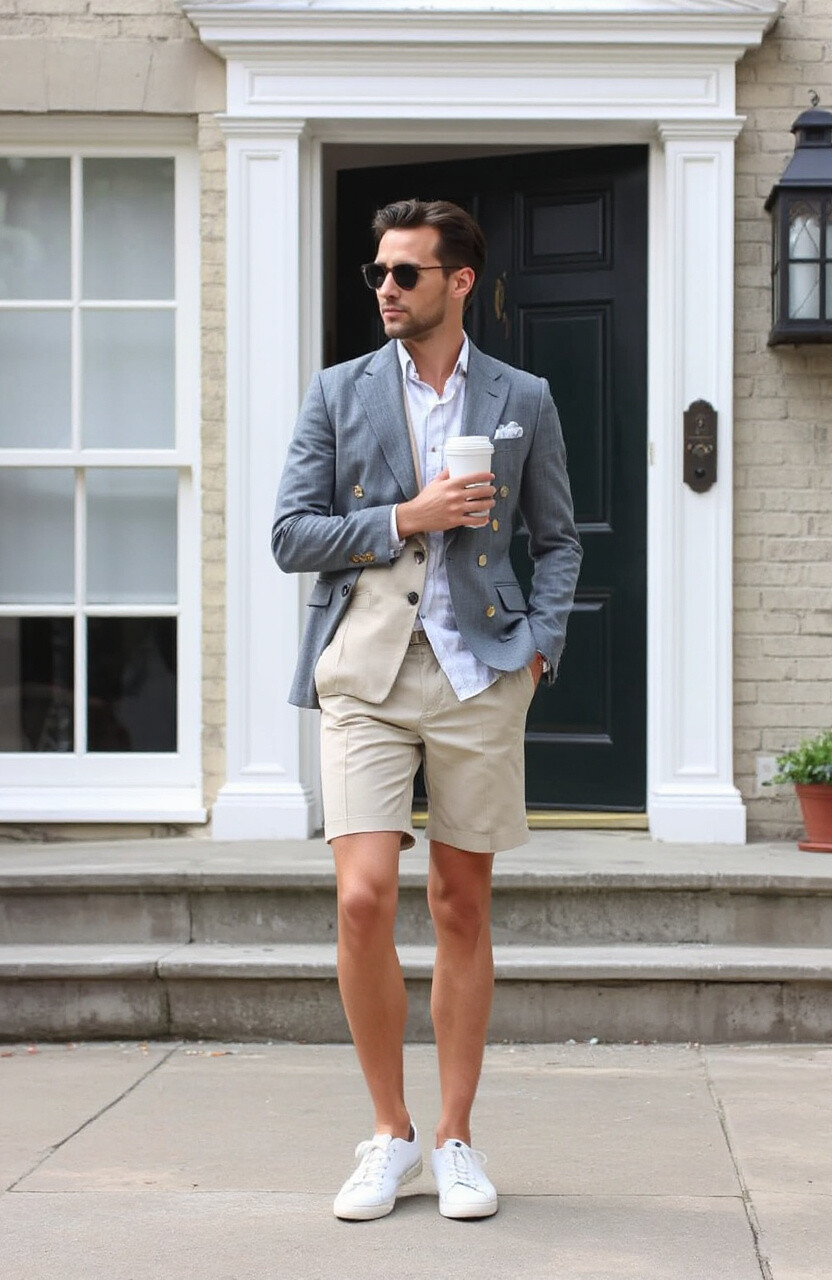 This combination keeps things light and breezy, perfect for garden parties or summer outings. Choose shorts that complement your jacket.