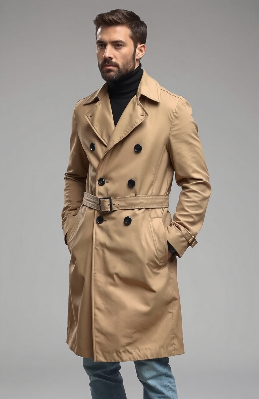 A double-breasted trench coat is an iconic piece. It’s functional and adds an element of mystery to your look.