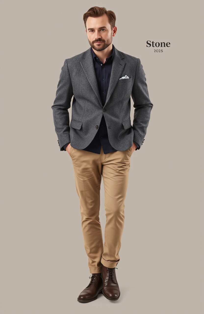 Use stone in pants or jackets for a sophisticated, understated look. It’s a great alternative to standard gray or beige.