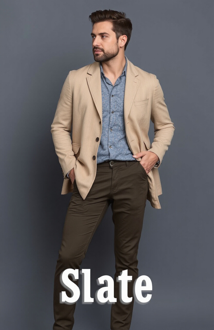 Use slate in pants or jackets for a sophisticated, understated look. It’s a great alternative to standard gray or beige.