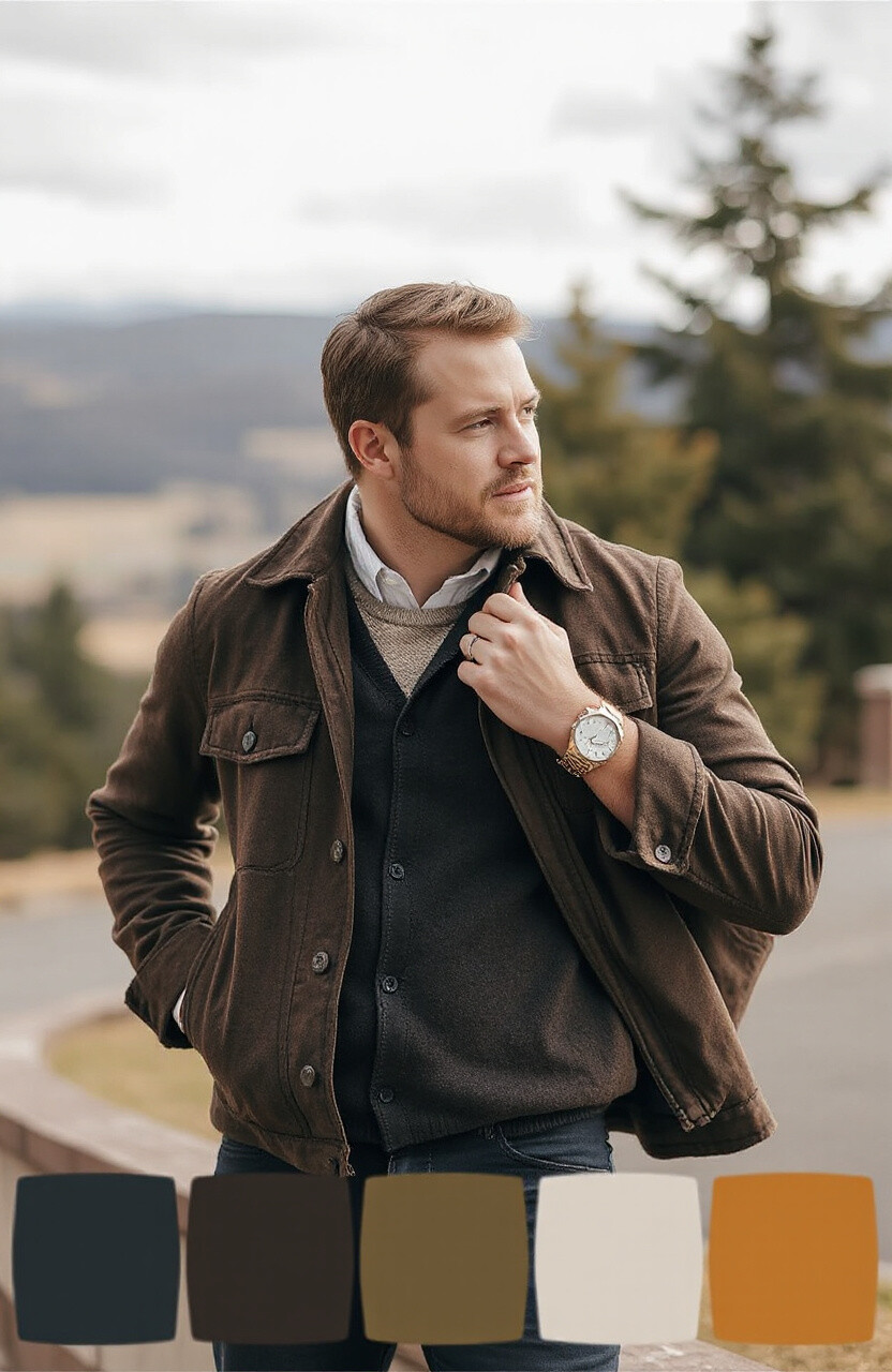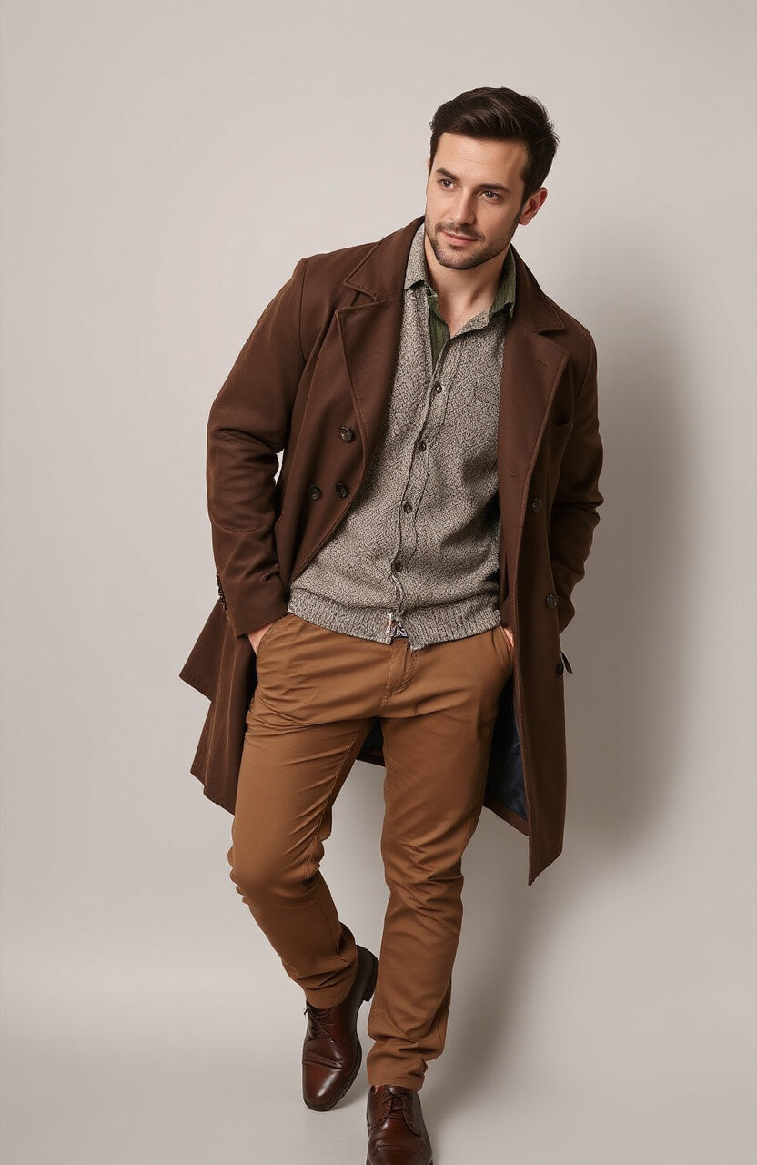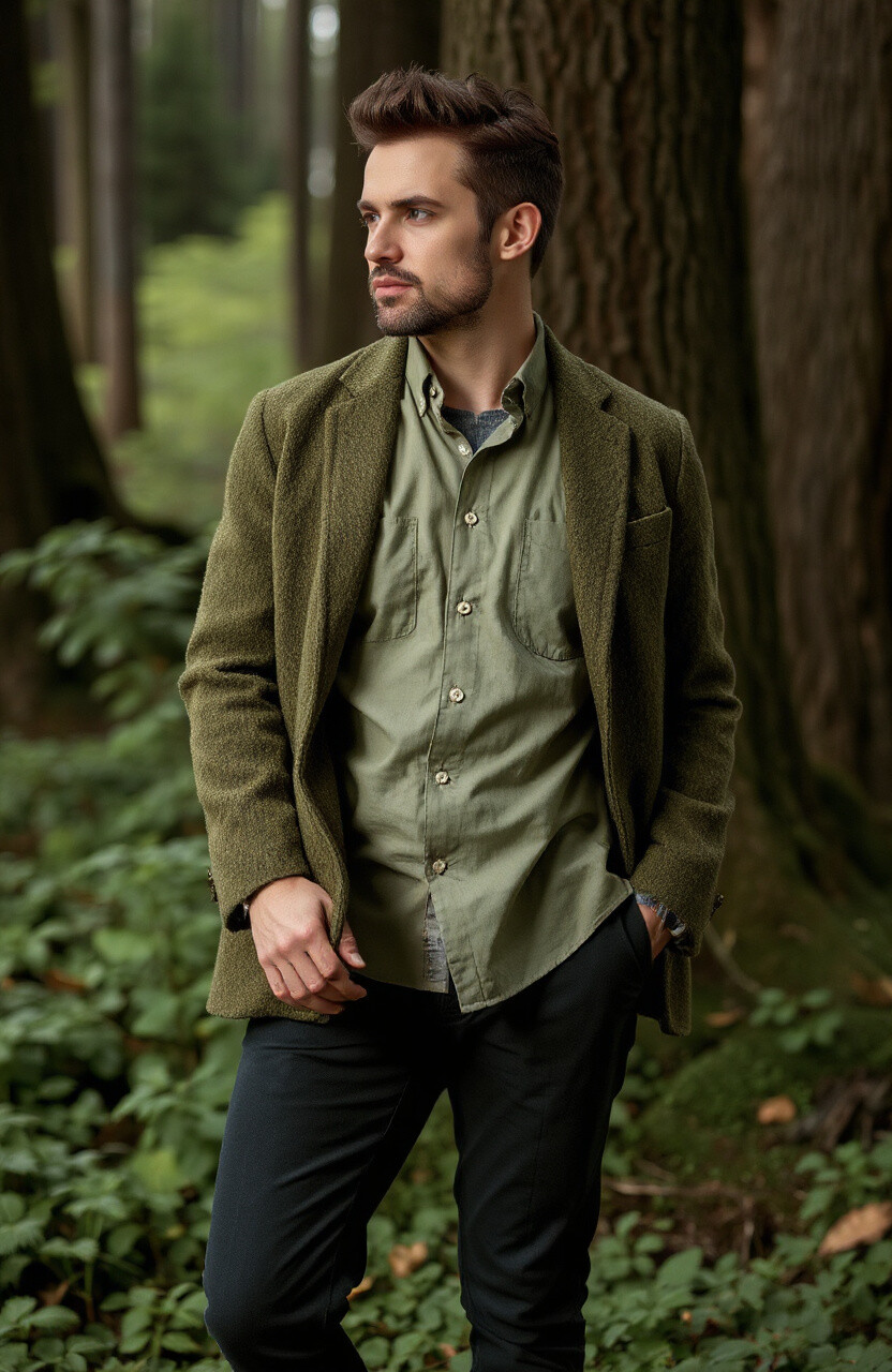 Olive jackets or pants are a must-have in every man’s wardrobe. It’s a color that exudes confidence and style, effortlessly blending with other earthy tones.