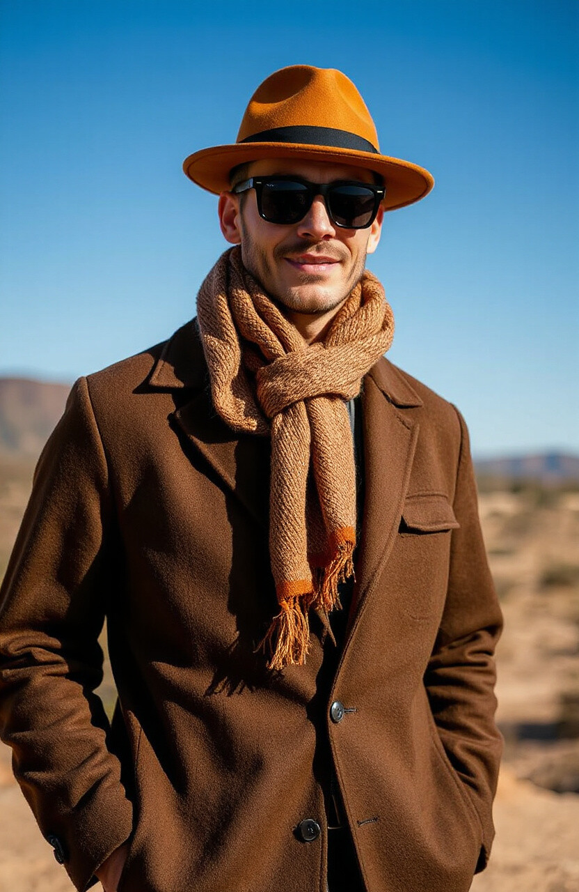 Try ocher in accessories like hats or ties to brighten up any outfit. It’s a bold choice that shows confidence and creativity.
