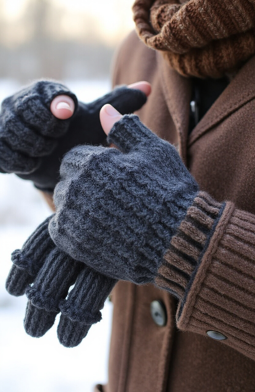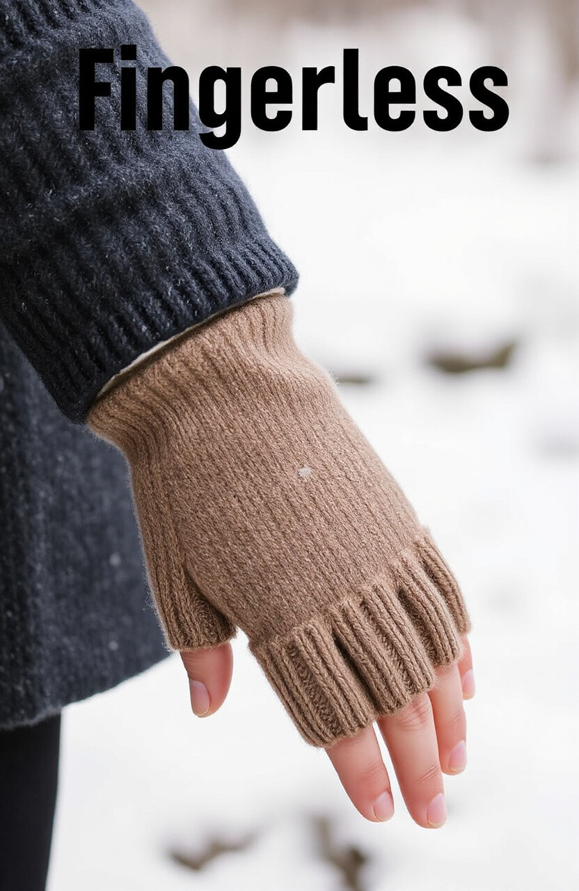 Stay warm with fingerless wool gloves. The wool material provides excellent insulation.