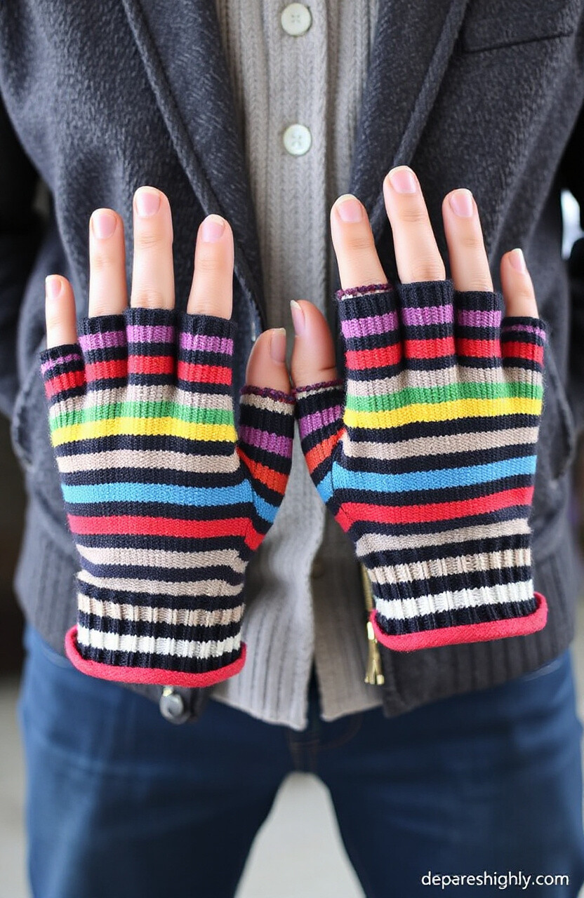 Add a pop of color with vibrant striped gloves. They are fun and playful, perfect for lifting your spirits.