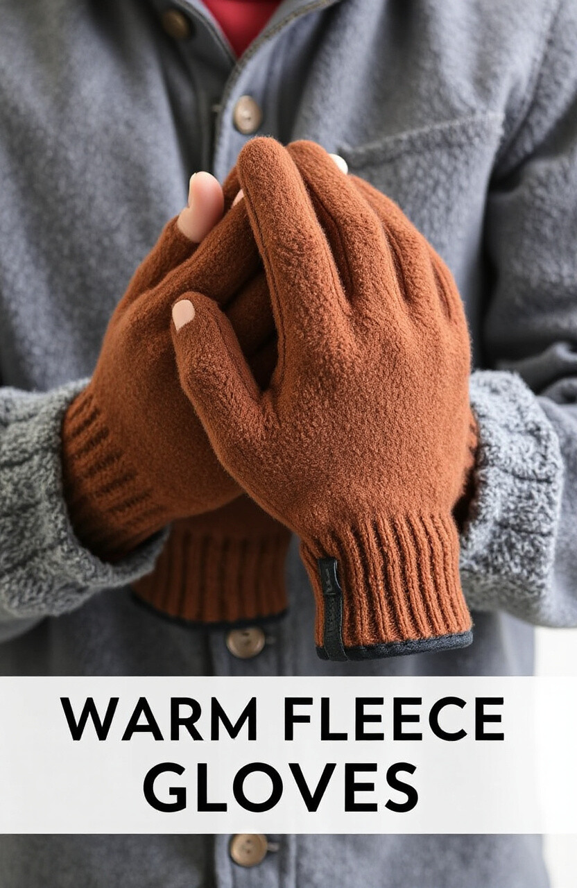 Stay cozy with warm fleece gloves. They are soft and insulating.