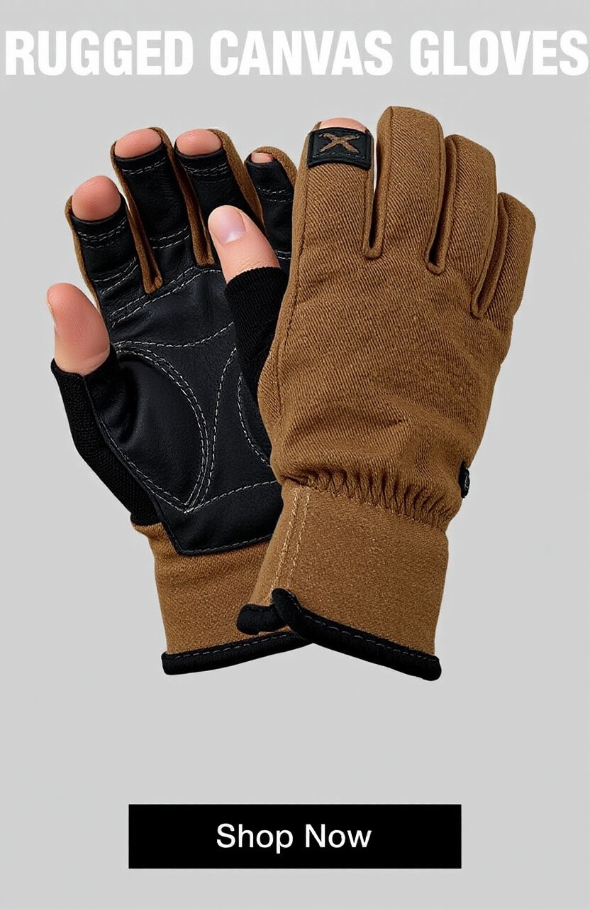 Embrace the rugged look with canvas gloves. Perfect for outdoor adventures.