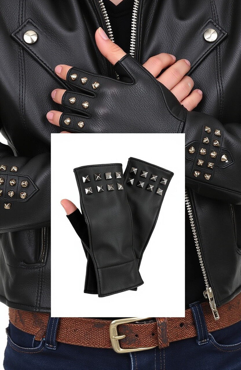 Rock out with studded rocker gloves. Perfect for adding an edge to your style.