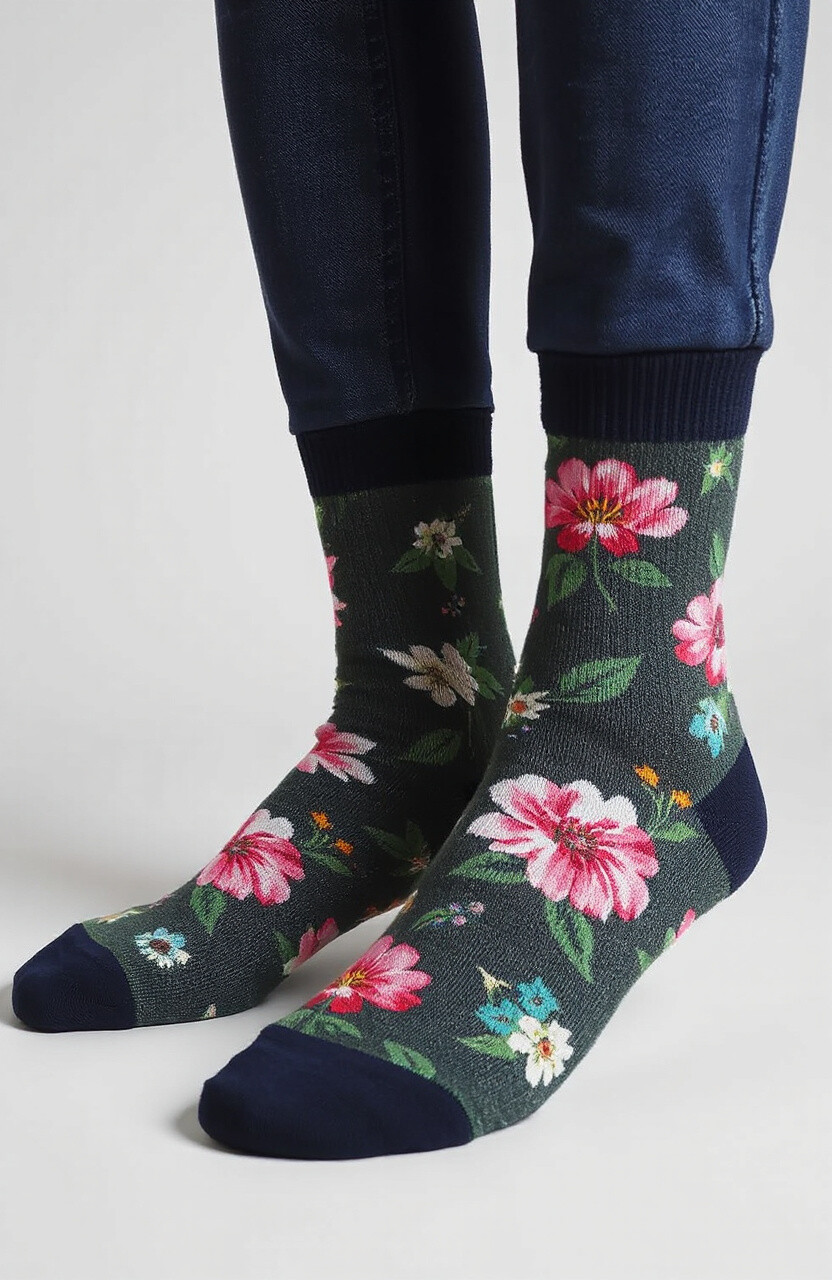 Floral socks are a fun way to add personality to your look. They’re a playful twist on a basic accessory. The best part is, they peek out just enough to be noticed.