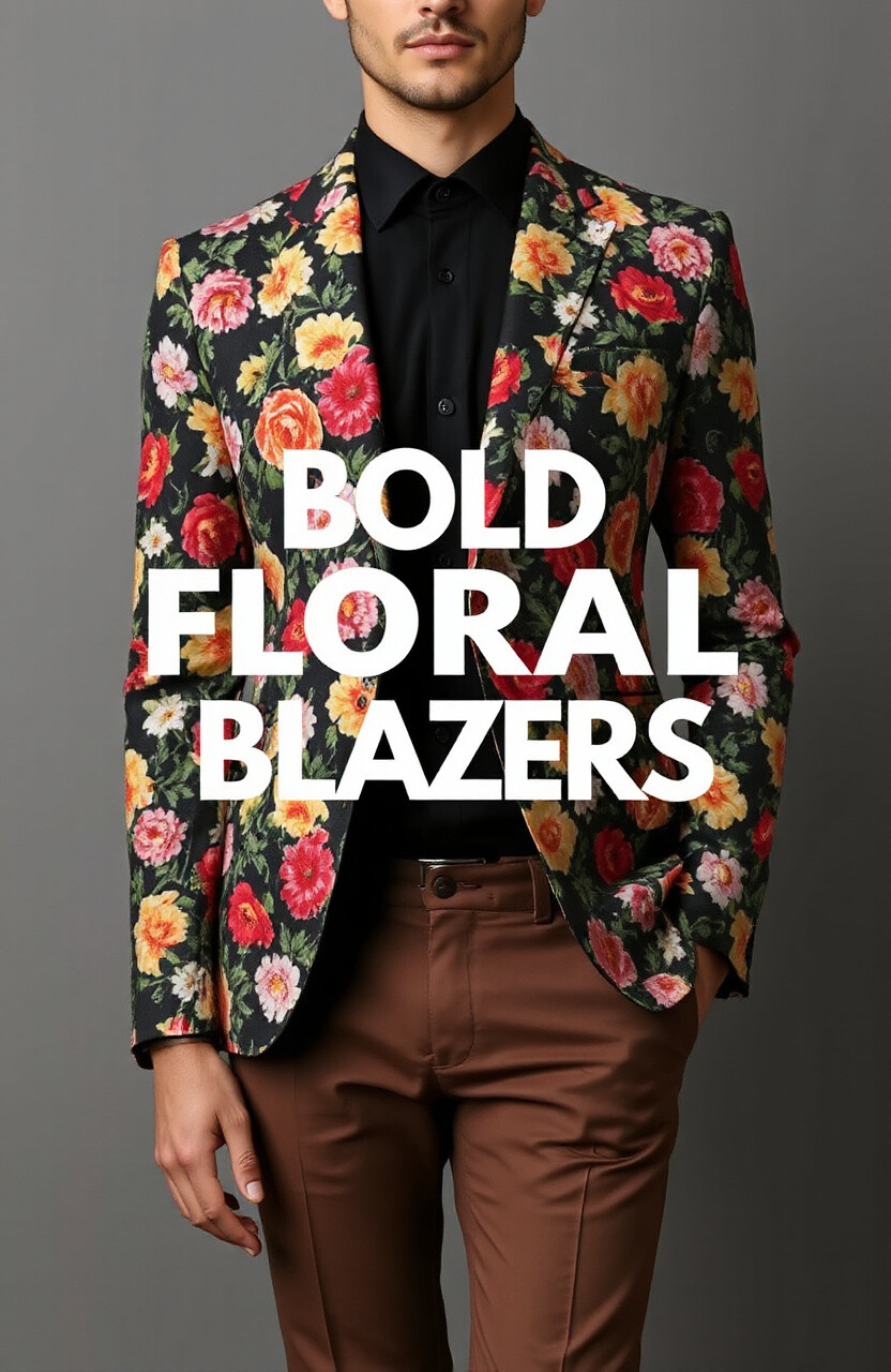 Imagine a blazer that combines structure with a field of flowers. Bold floral blazers are perfect for those who want to stand out at a formal event. They’re unique because they add color to a traditionally monochrome garment.