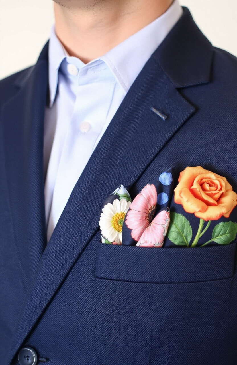 Pocket squares are a small but impactful way to incorporate florals into your outfit. They’re perfect for adding a splash of color to a plain suit. The variety of patterns available means you can find one for any occasion.