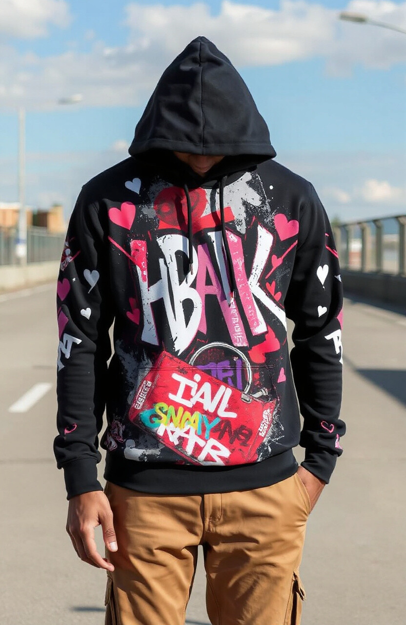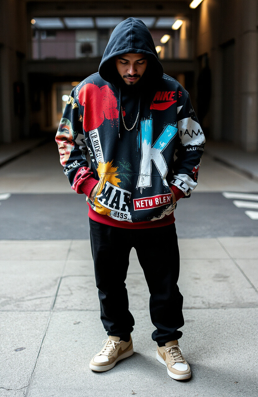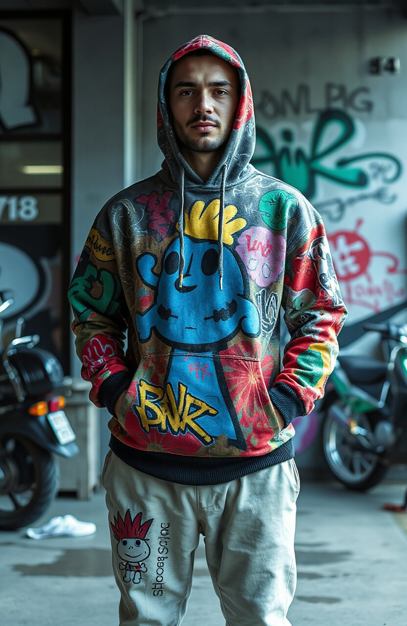 Bring the city streets to your closet with a graffiti-style hoodie. It’s a blend of urban art and fashion that’s perfect for streetwear enthusiasts. Pair it with joggers for a complete look.