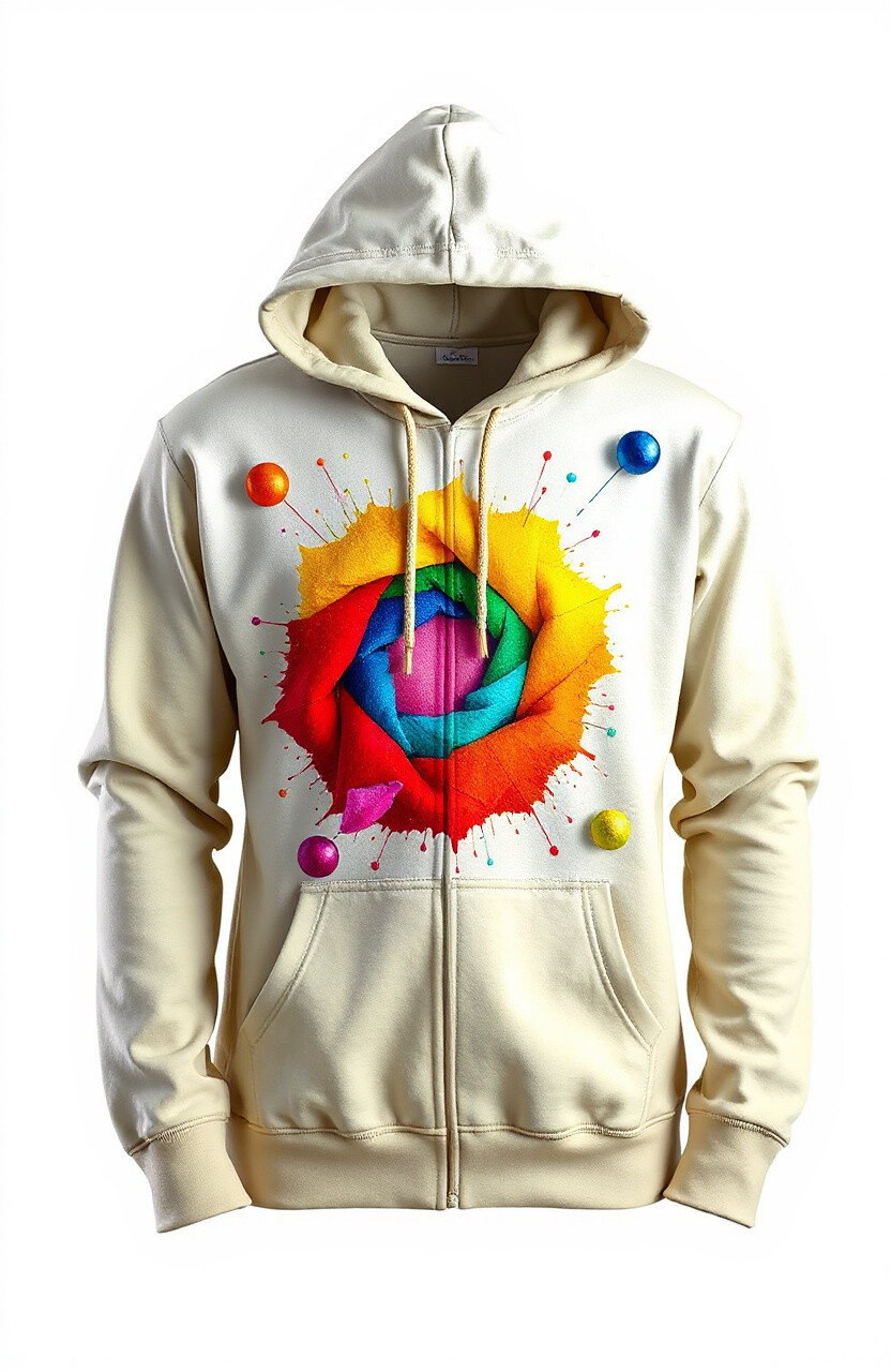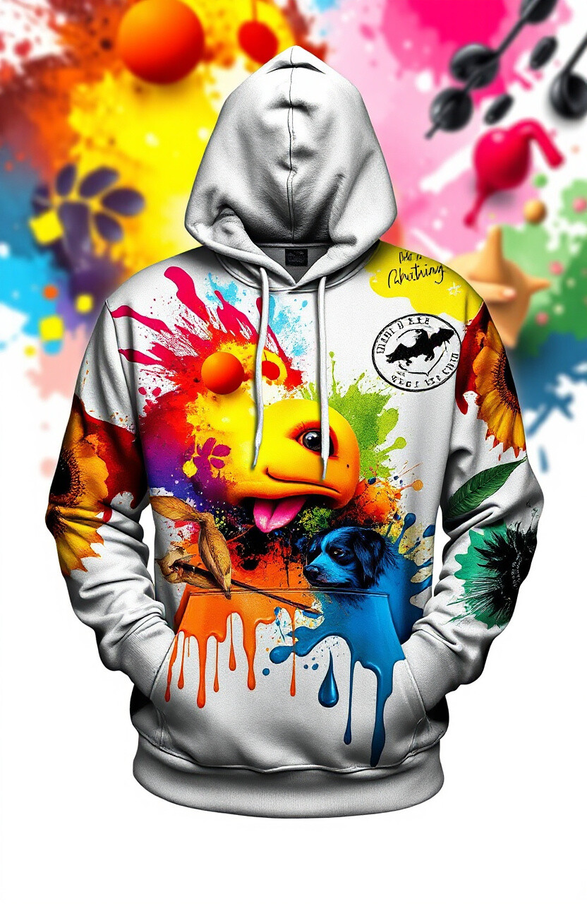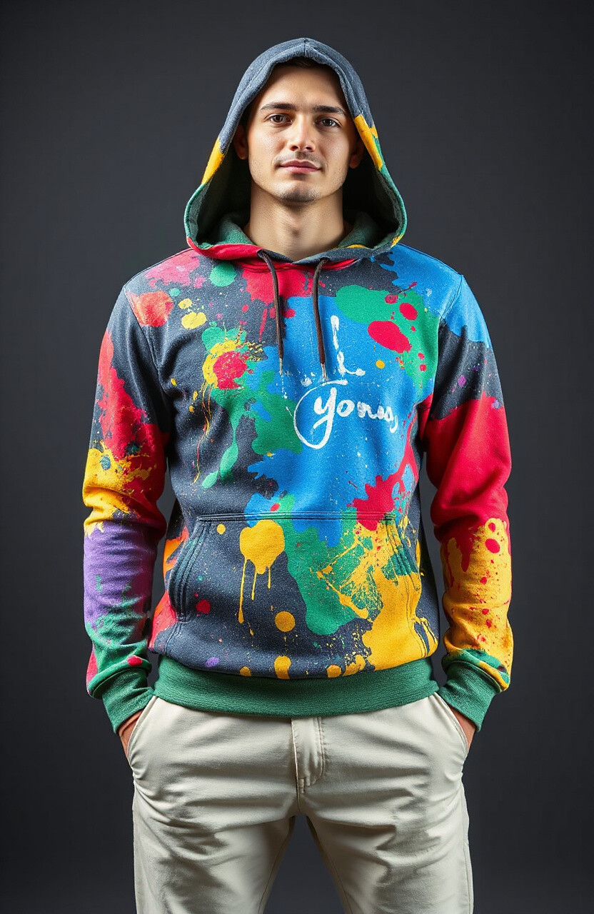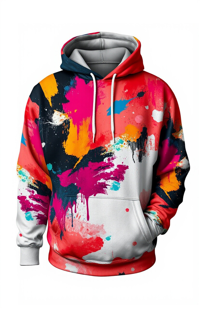 Embrace your inner artist with a hoodie that looks like a canvas of vibrant paint splashes. It’s perfect for those who love bold and creative fashion. Pair it with neutral pants to let the hoodie shine.