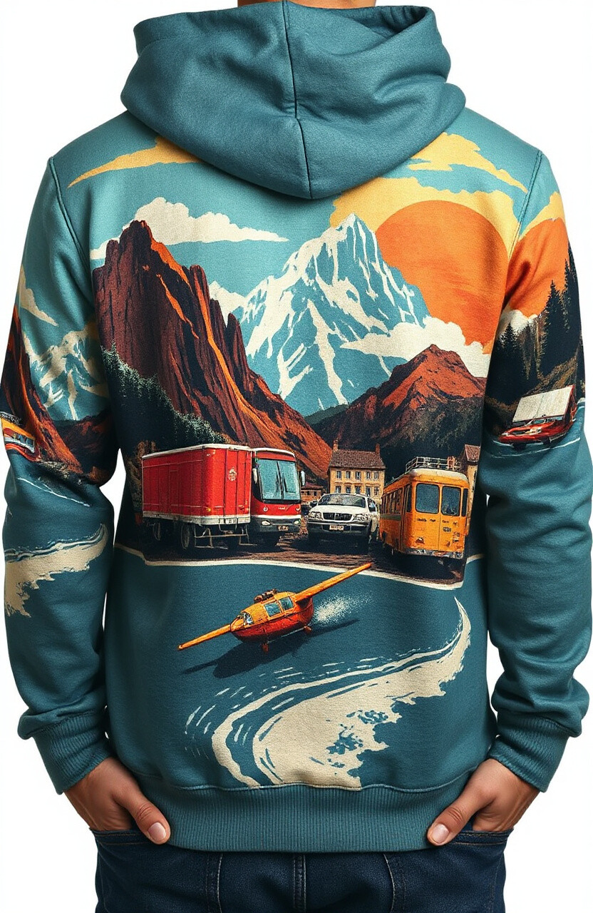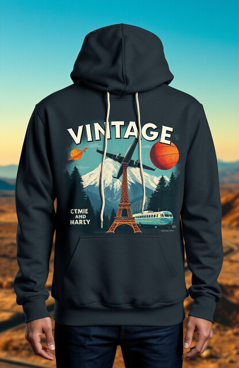Celebrate your wanderlust with a hoodie that features vintage travel posters. It’s an ode to the golden age of travel. Perfect for globe-trotters and explorers.