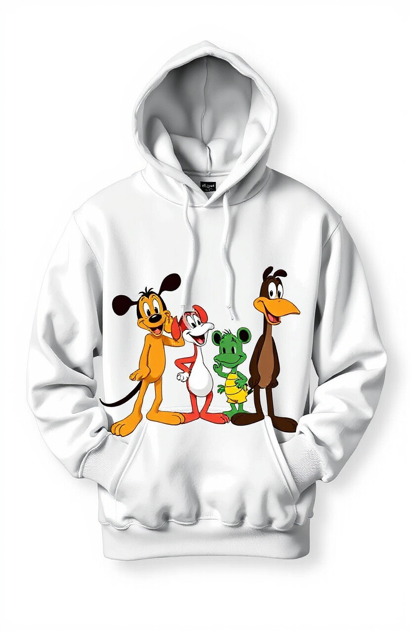 Take a trip down memory lane with a hoodie featuring classic cartoon characters. It’s a nostalgic nod to your childhood favorites. Perfect for casual weekends.
