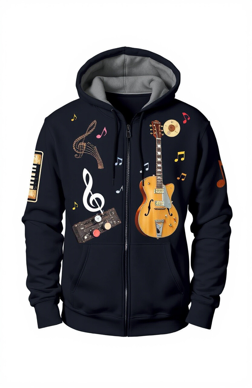 Show off your love for music with a hoodie featuring musical notes and instruments. It’s a harmonious addition to any wardrobe. Ideal for music festivals and concerts.