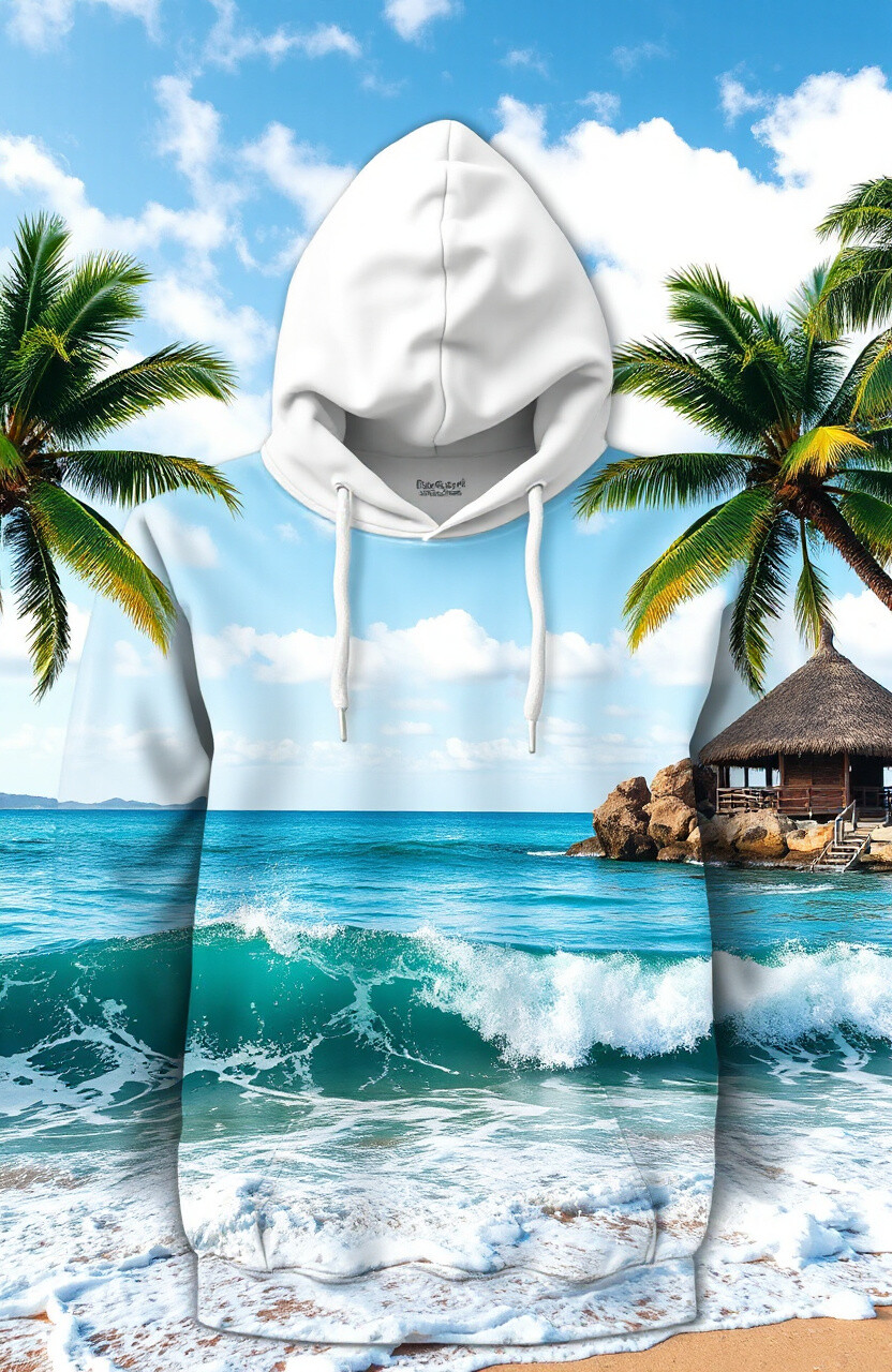 Escape to a tropical paradise with a hoodie that features palm trees and ocean waves. It’s like wearing a vacation. Perfect for beach lovers and sun chasers.
