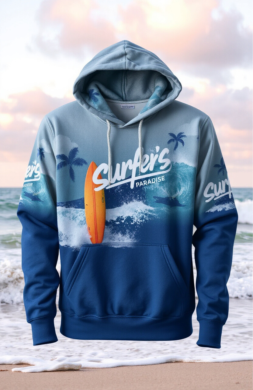 Catch the waves with a hoodie that features beach and surf motifs. It’s a laid-back addition to your wardrobe. Great for beach days and summer nights.