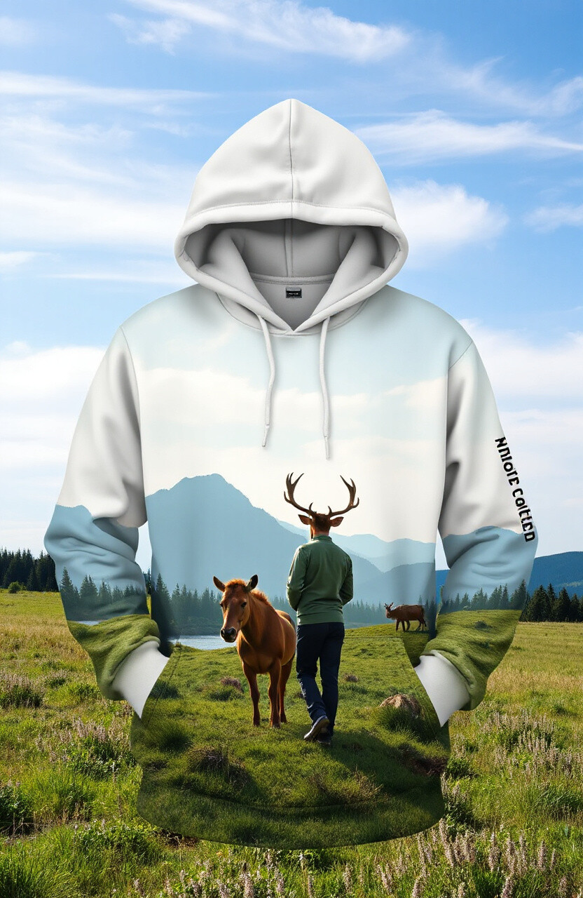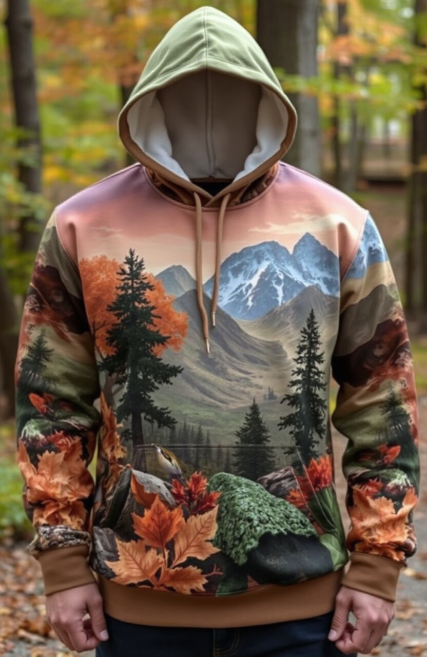 This hoodie is a tribute to the great outdoors. Featuring intricate designs of forests and wildlife, it’s ideal for adventure seekers. Wear it on your next hike or camping trip.