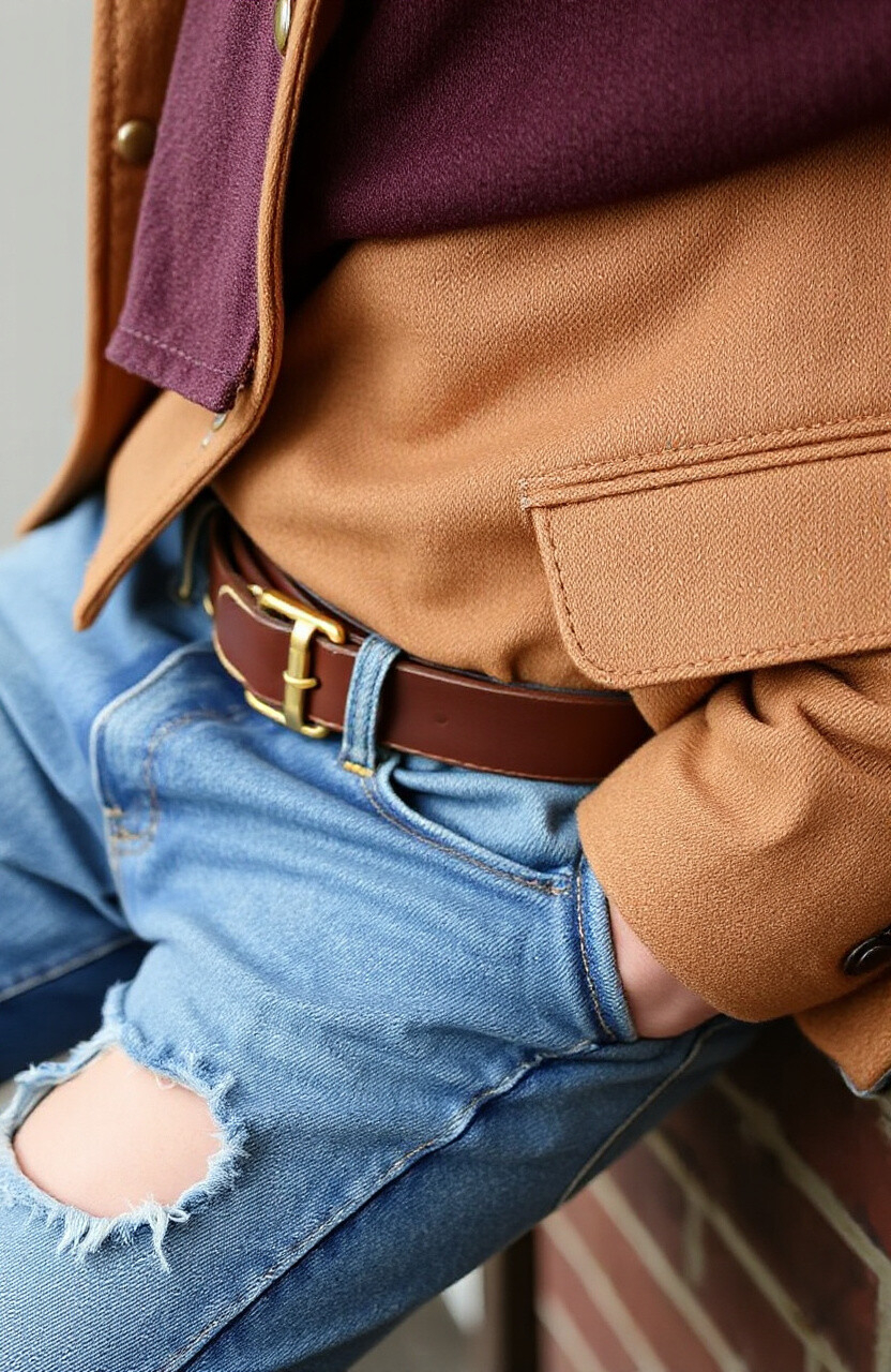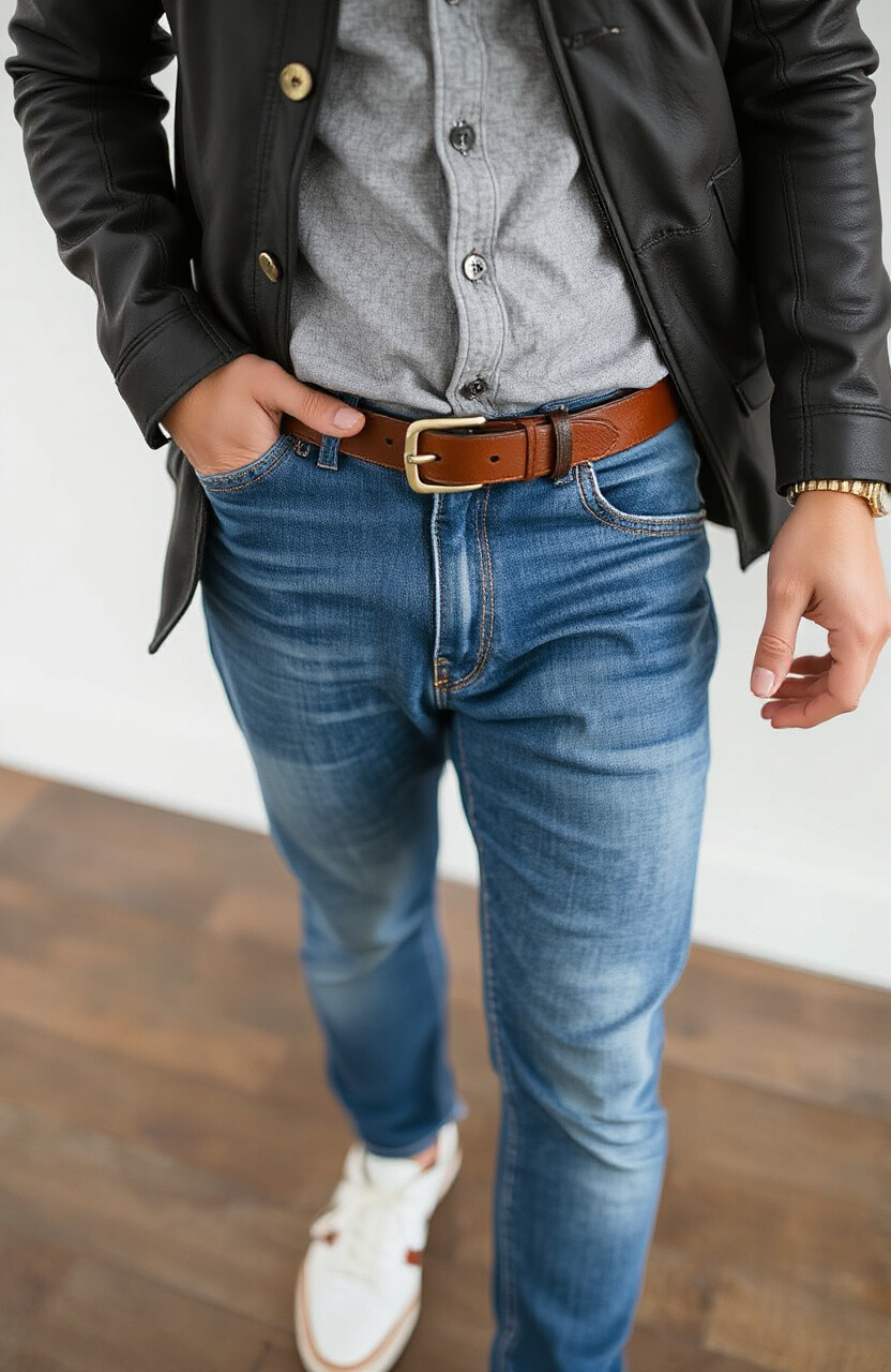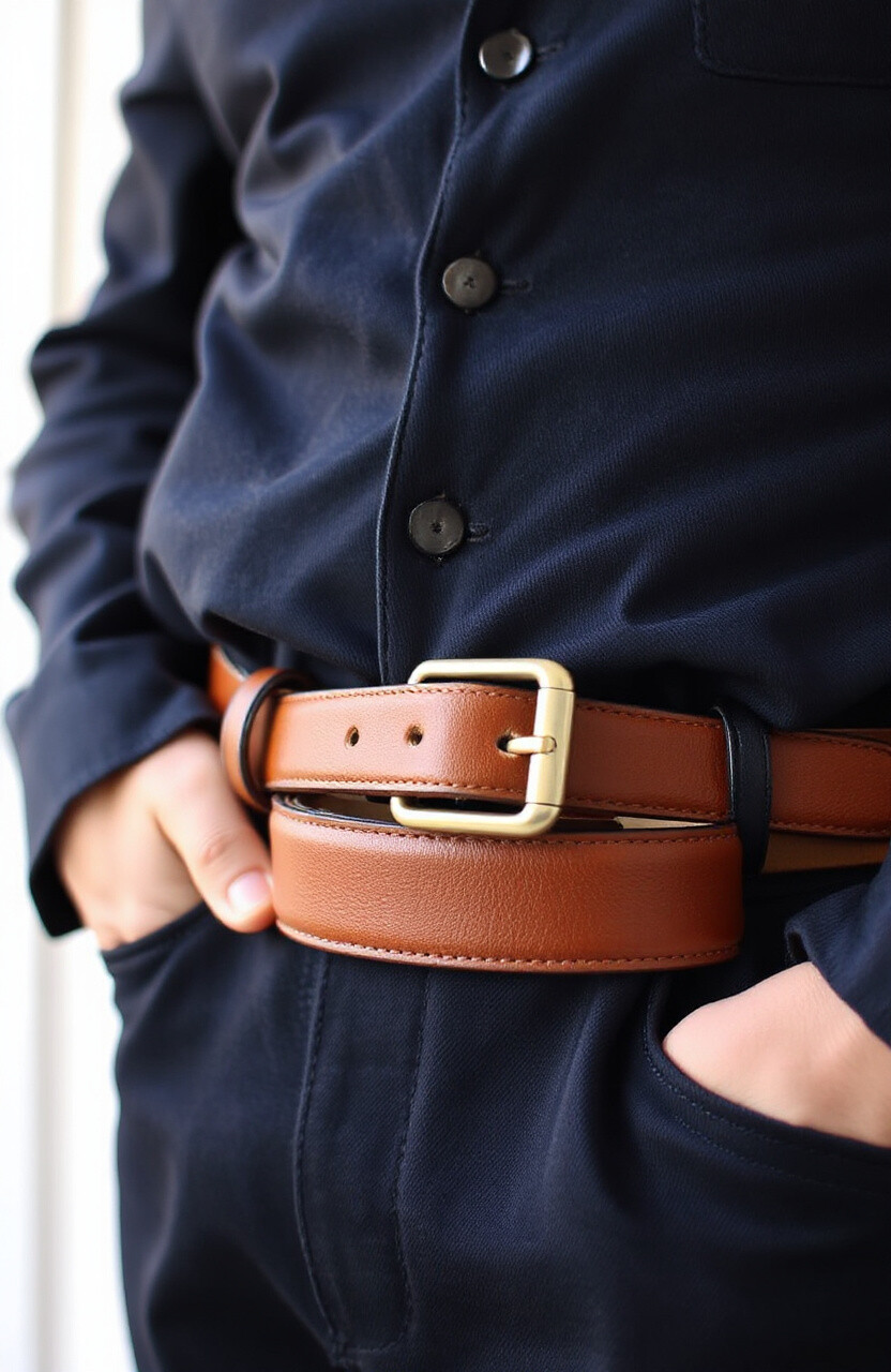 For a modern twist, try a magnetic buckle belt. It’s easy to fasten and looks sleek.