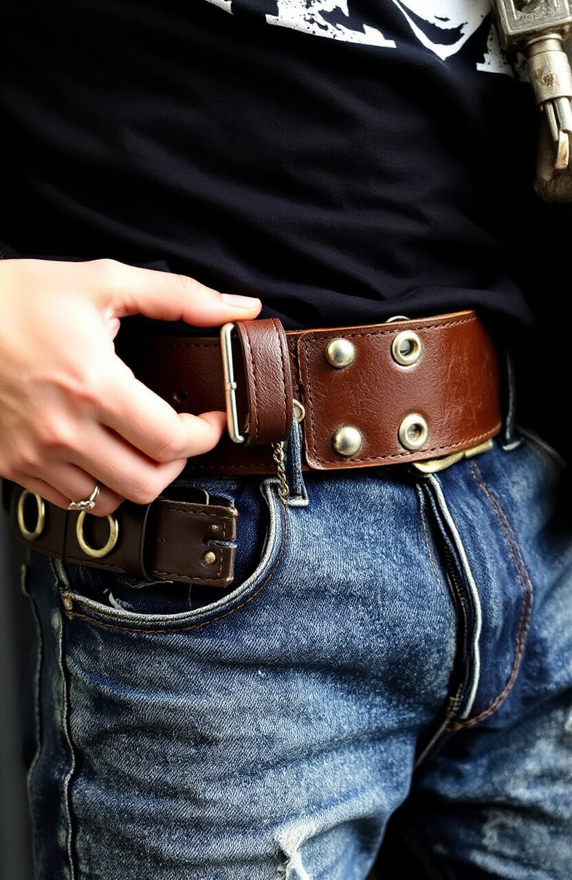 Harness belts are thick and sturdy, originally designed for workwear. Now, they’re a fashionable choice for a rugged look.