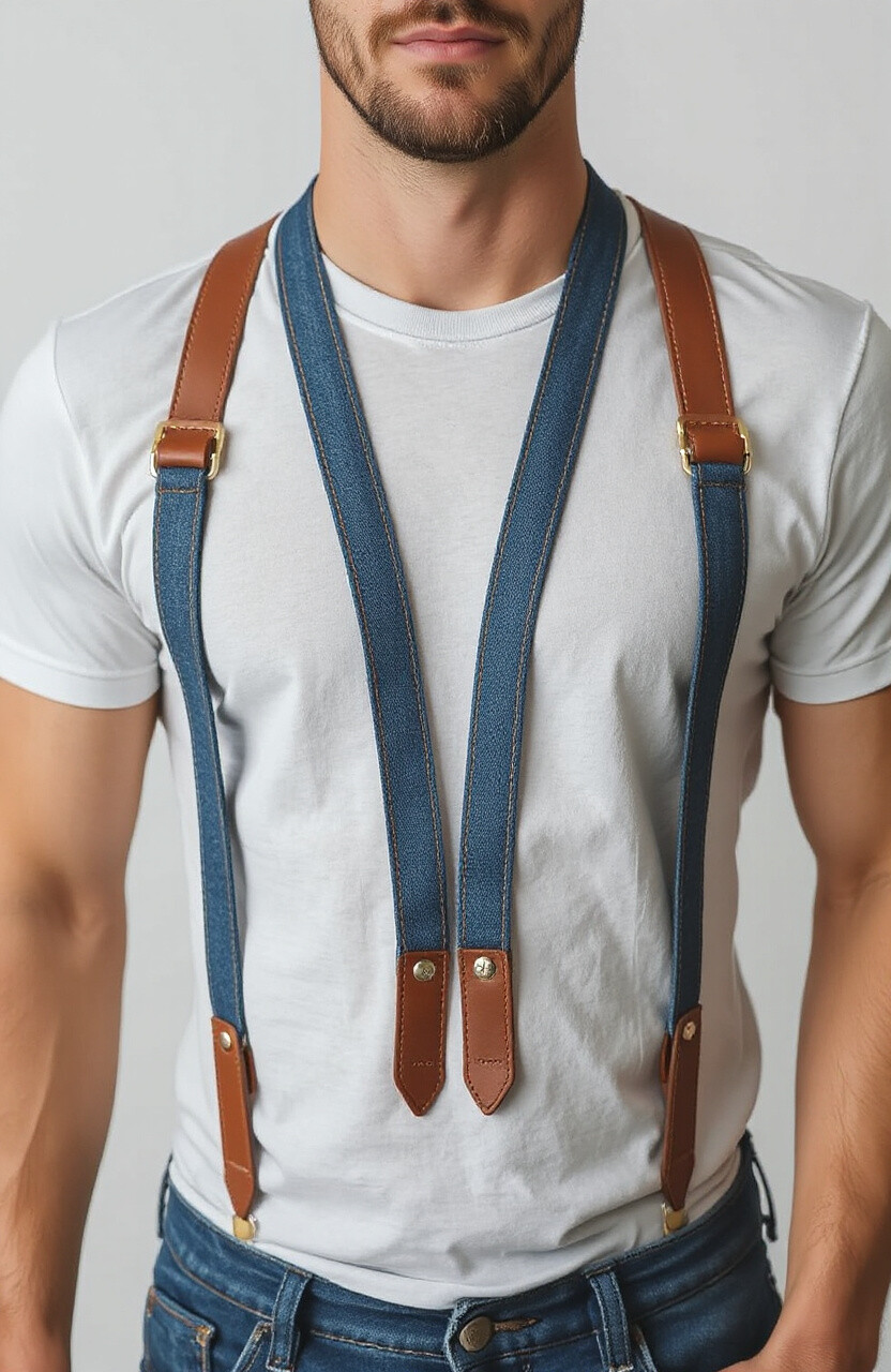 For a casual and laid-back vibe, denim-inspired leather suspenders are the perfect choice. They offer a unique blend of denim and leather, perfect for casual days or when you want to add a bit of edge to your look. Pair them with a simple tee to let the suspenders shine.