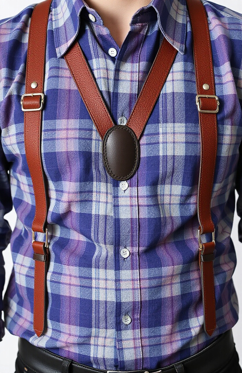 Plaid leather suspenders bring a classic and timeless pattern to your outfit. They’re perfect for casual days or when you want to add a bit of personality to your look. Pair them with solid-colored shirts to let the plaid stand out.