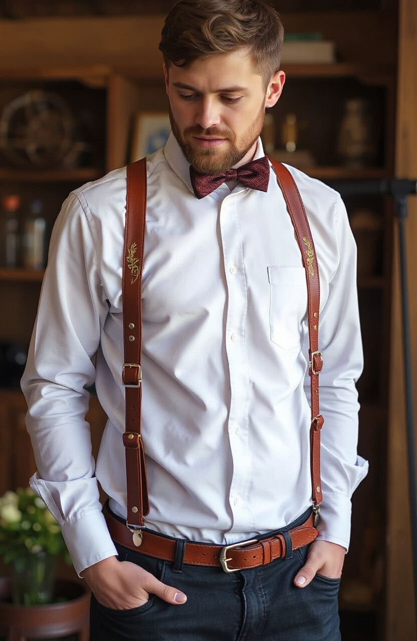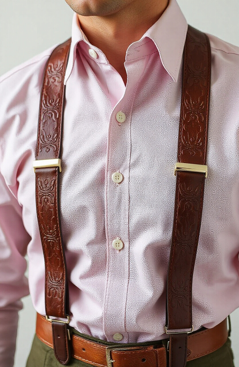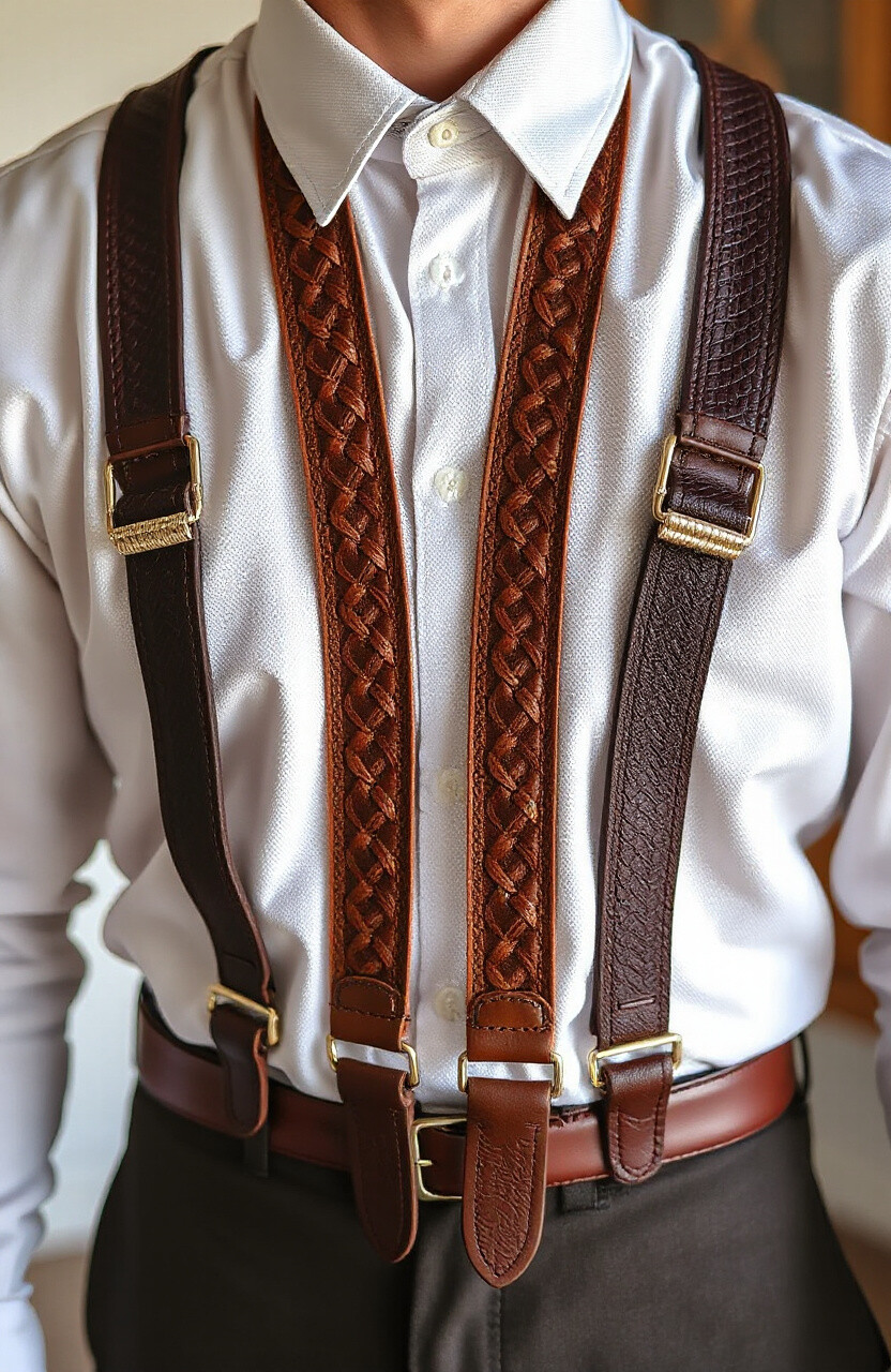 Embroidered leather suspenders are a testament to craftsmanship and detail. They feature intricate designs that add an artistic touch to any ensemble. Perfect for special occasions, they pair well with simple shirts to let the embroidery shine.