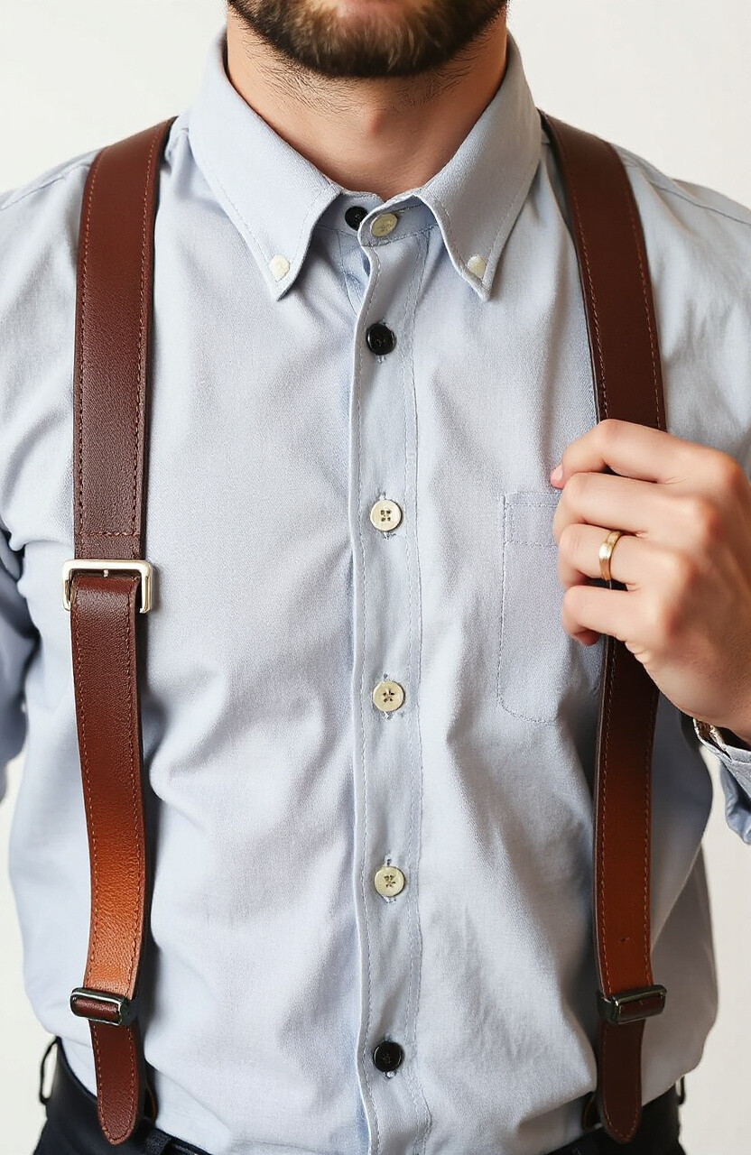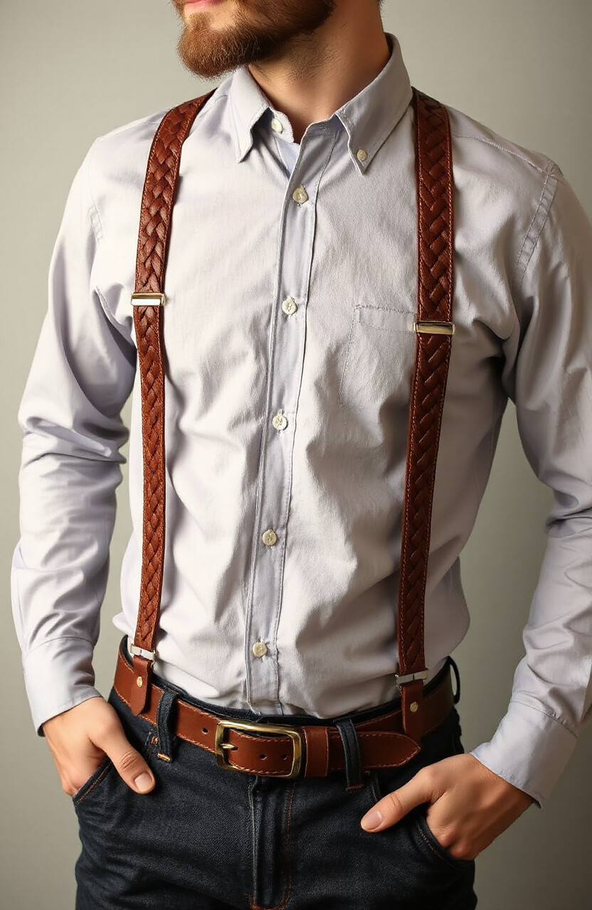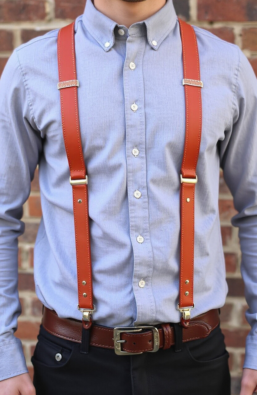 Embroidered leather suspenders are a testament to craftsmanship and detail. They feature intricate designs that add an artistic touch to any ensemble. Perfect for special occasions, they pair well with simple shirts to let the embroidery shine.